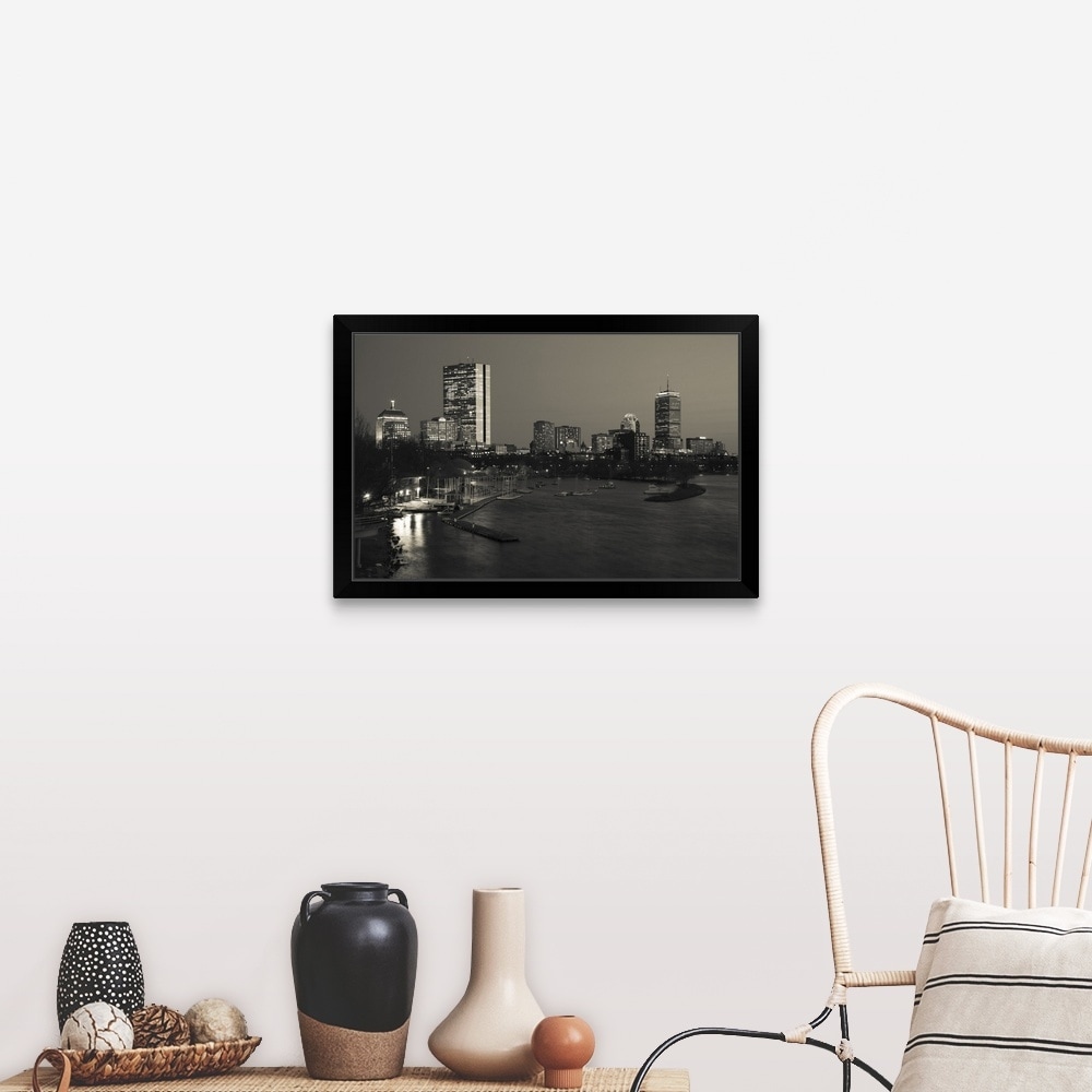"Buildings on the waterfront, Charles River, Boston, Massachusetts" Black Float Frame Canvas Art