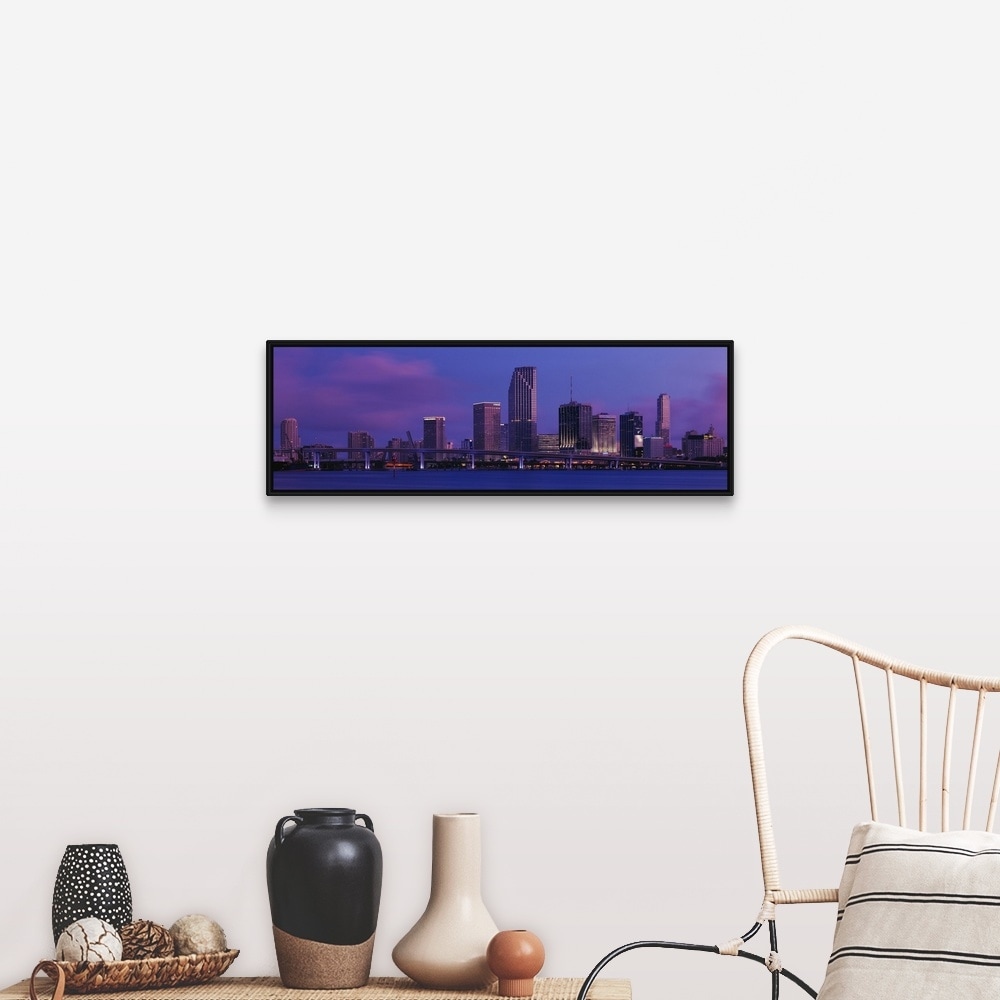 "Buildings at the waterfront, Miami, Florida" Black Float Frame Canvas Art