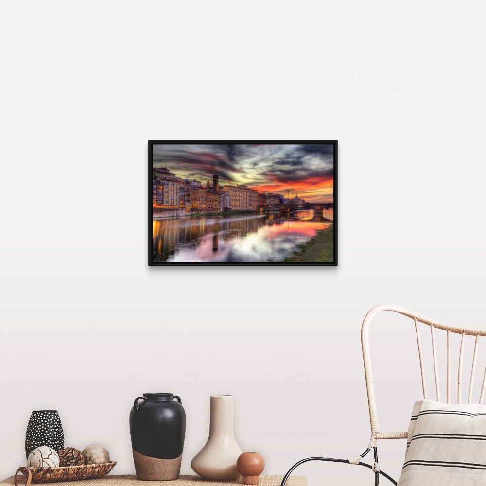 "Dusk waterfront in Tuscany, Italy" Black Float Frame Canvas Art
