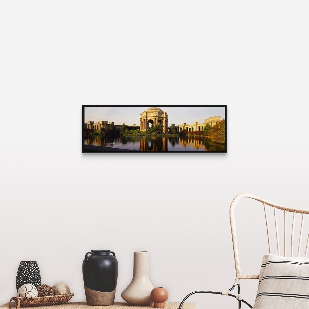 "Buildings at the waterfront, Palace of Fine Arts, San Francisco, California" Black Float Frame Canvas Art