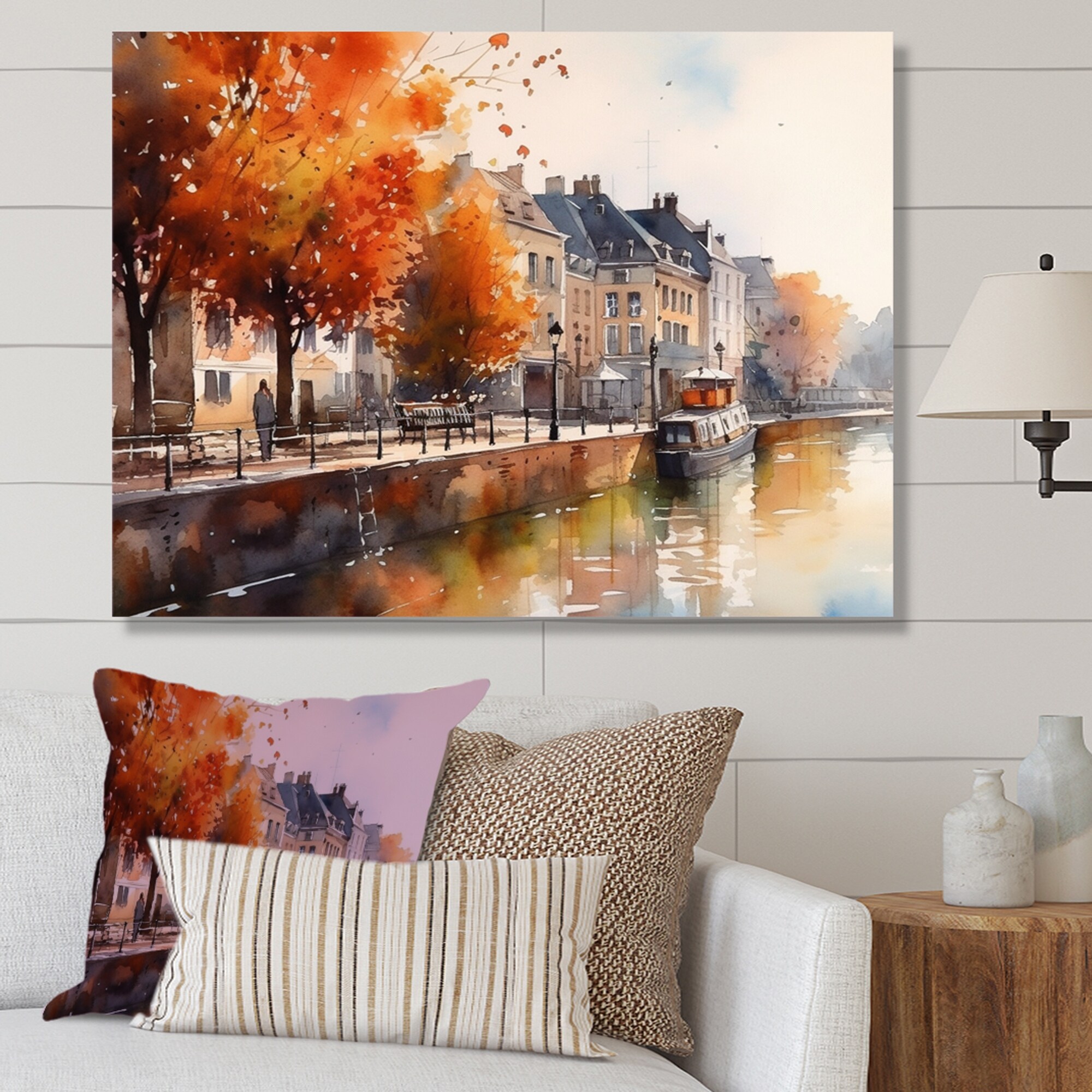 Designart "Waterfront Cityscape I" City Art Deco Canvas Wall Art