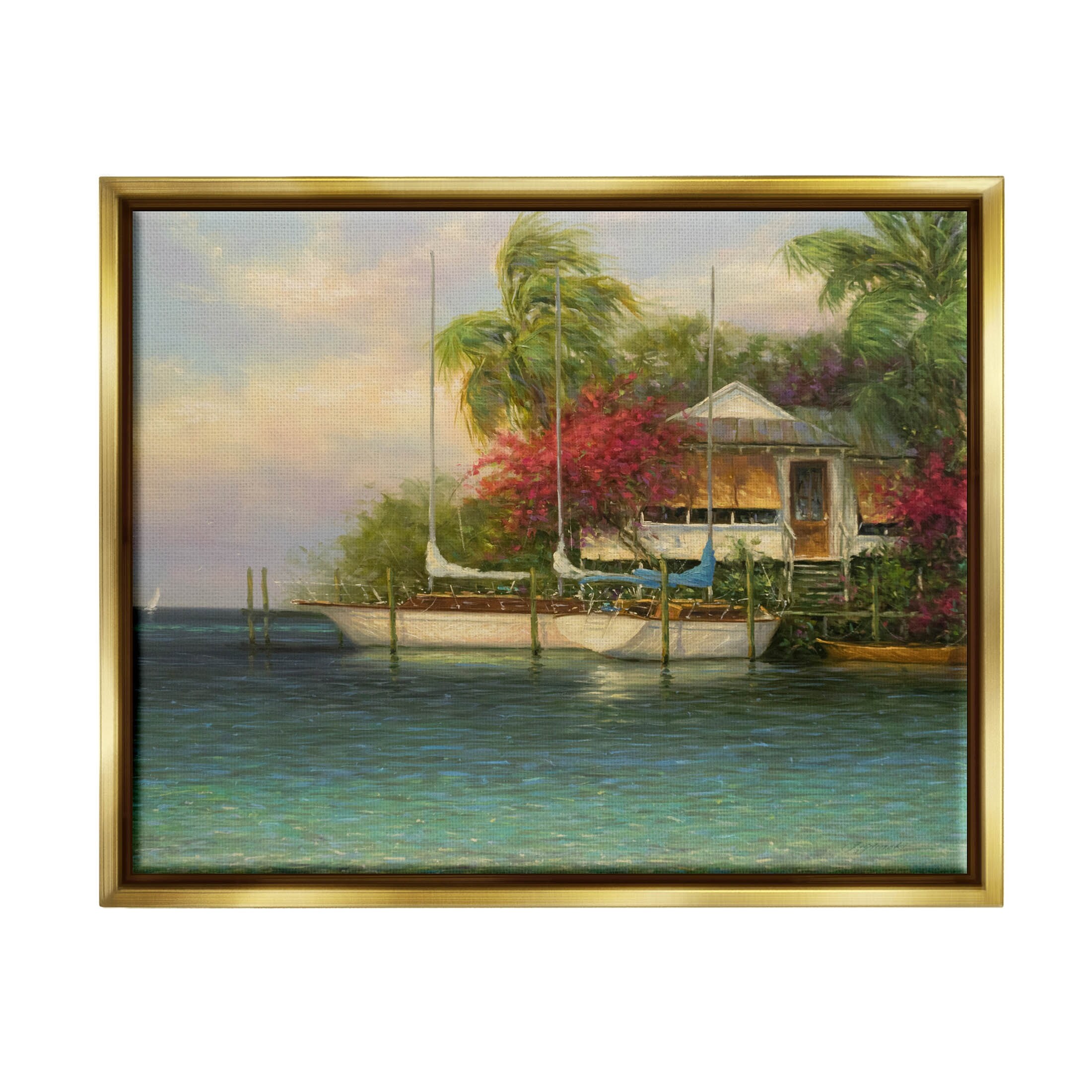 Stupell Industries Tropical Boats Waterfront Scenery Floater Canvas Wall Art by Martin Figlinski