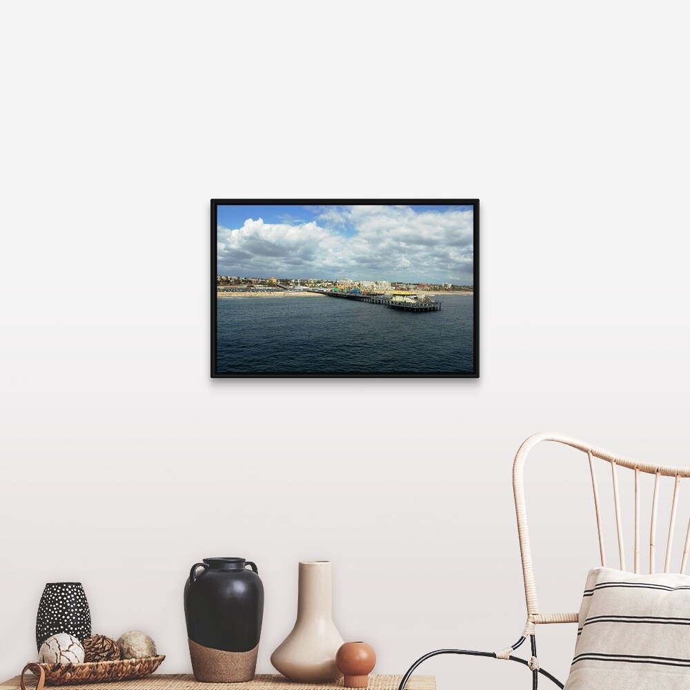 "Santa Monica Waterfront" Black Float Frame Canvas Art