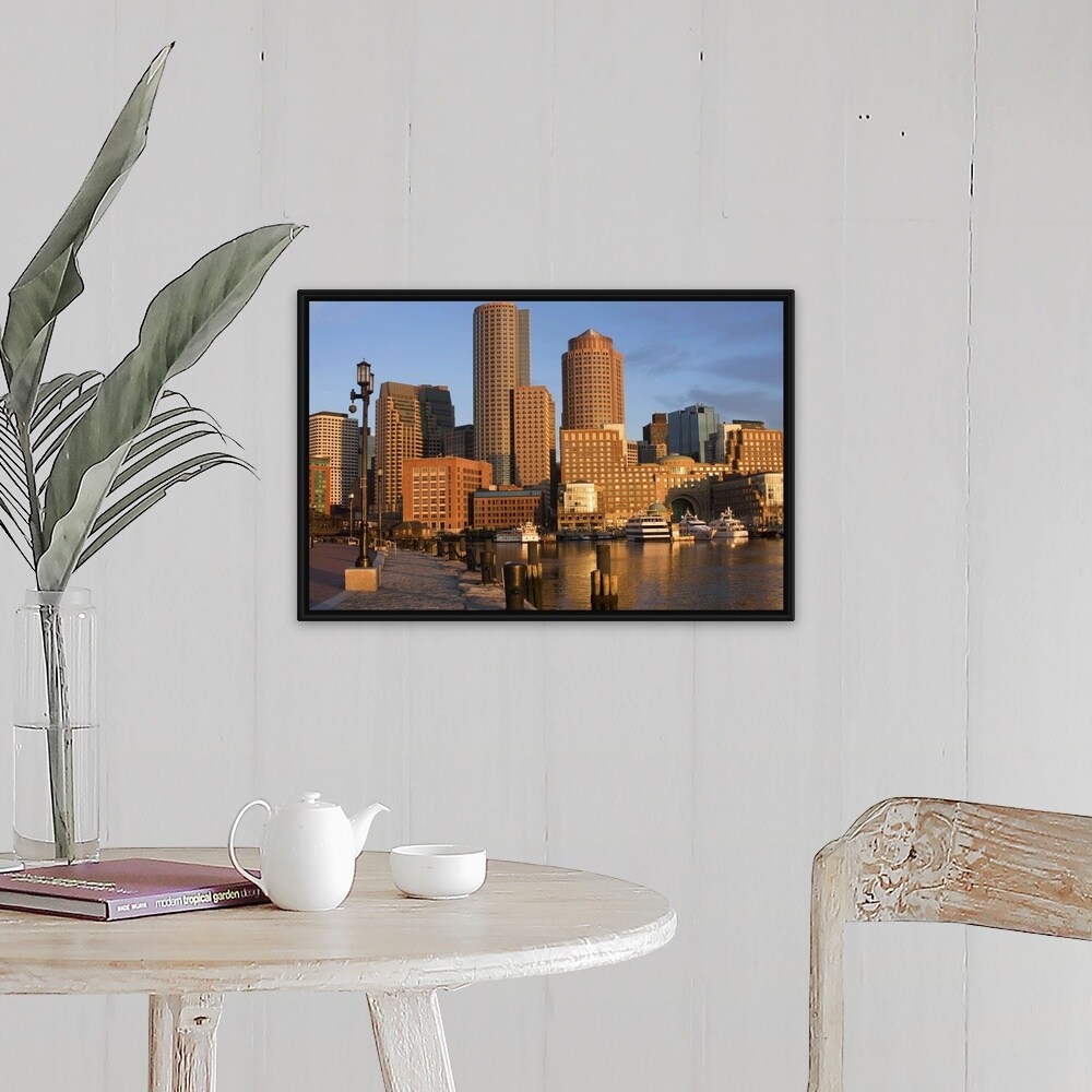 "Boston, Massachusetts Waterfront" Black Float Frame Canvas Art