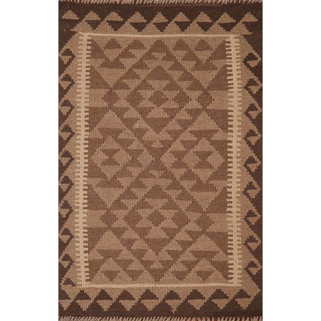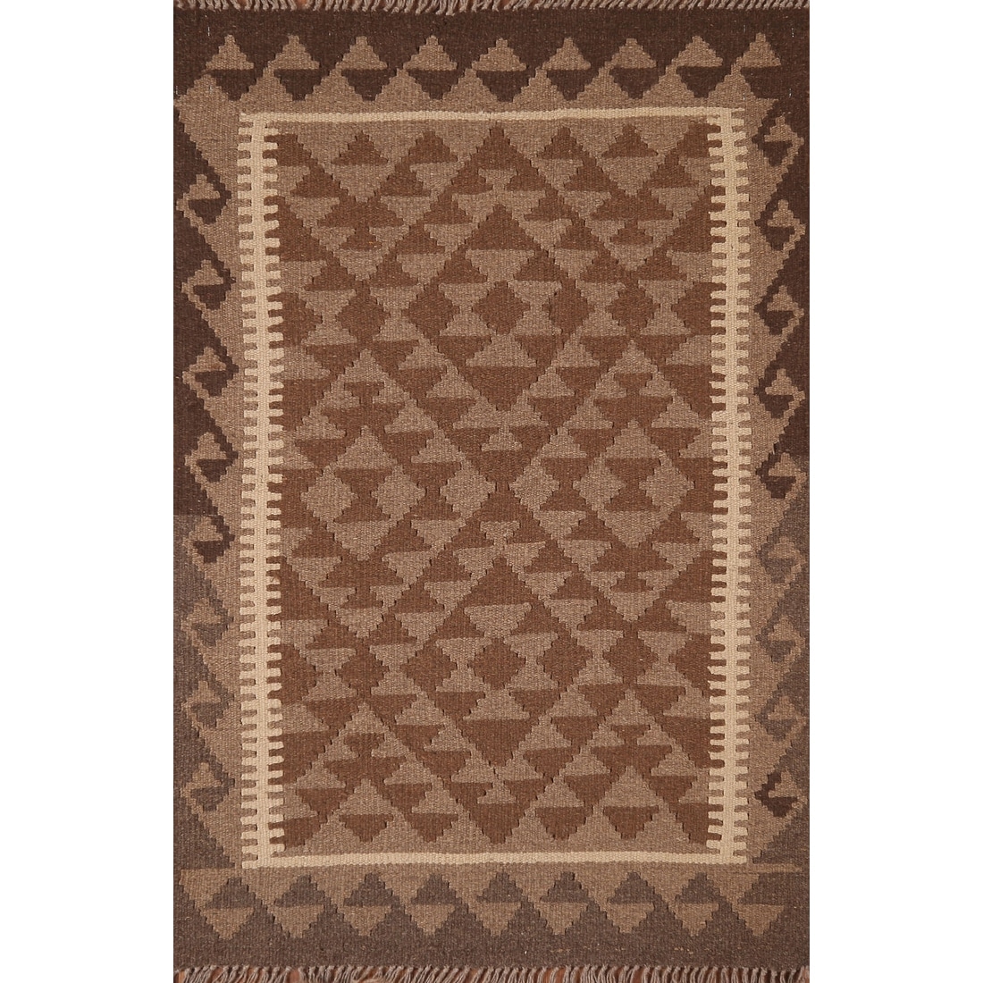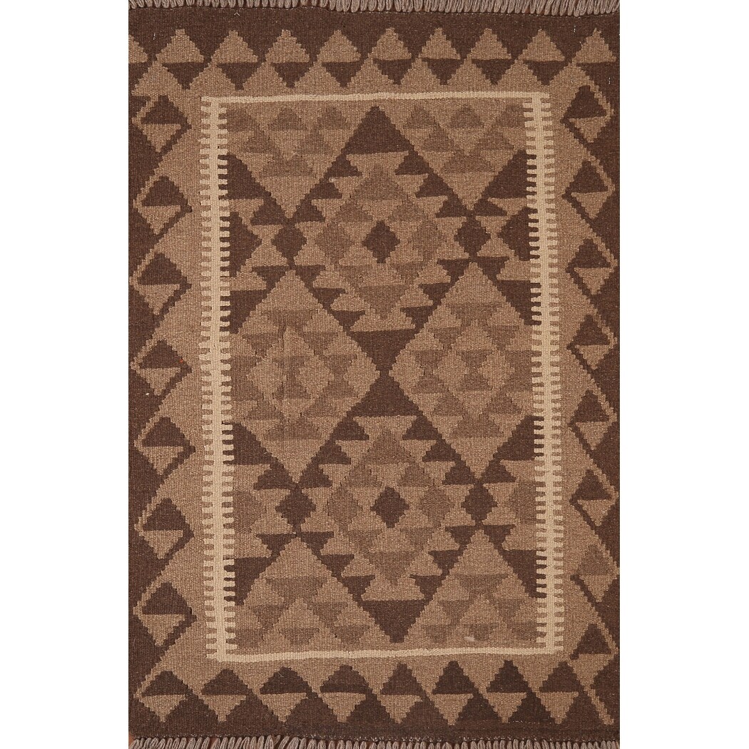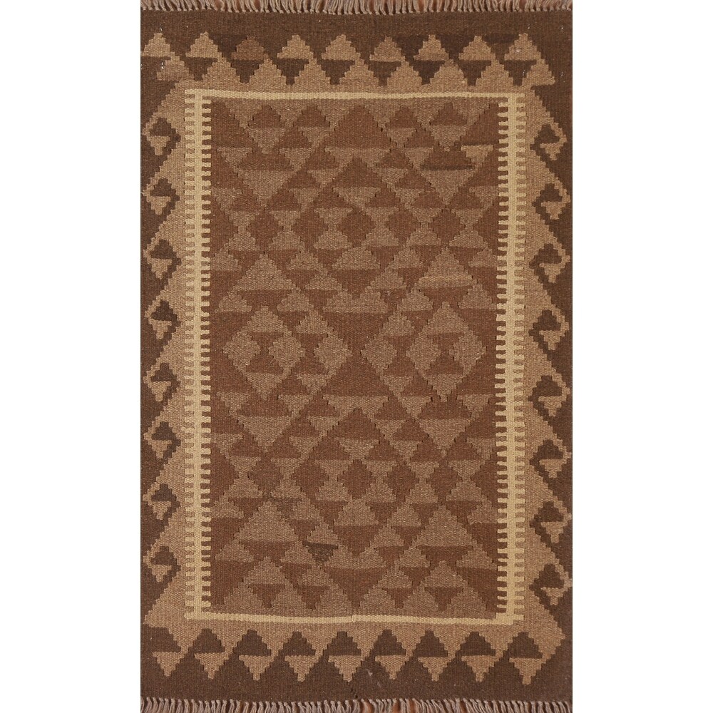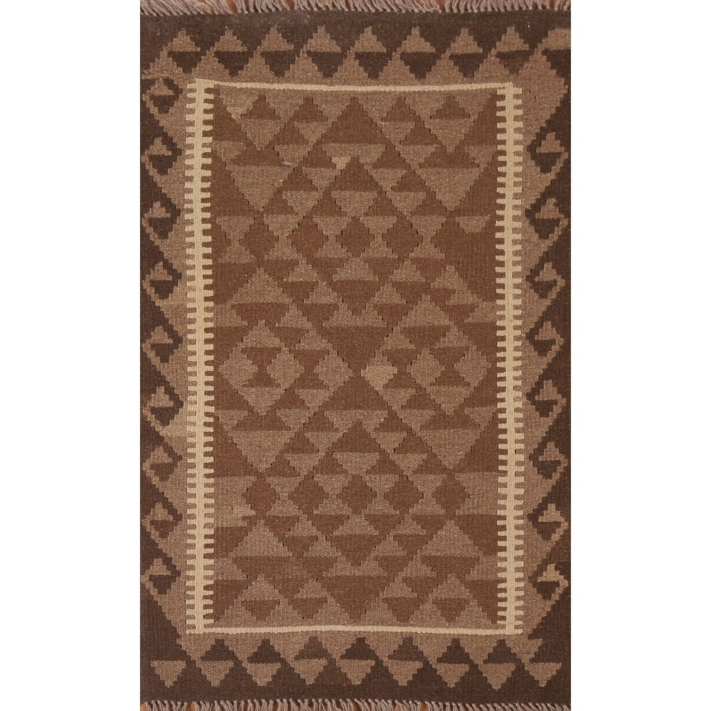 Brown Kilim Reversible Rug Flat-weave Geometric Wool Foyer Carpet - 2'8" x 4'2"