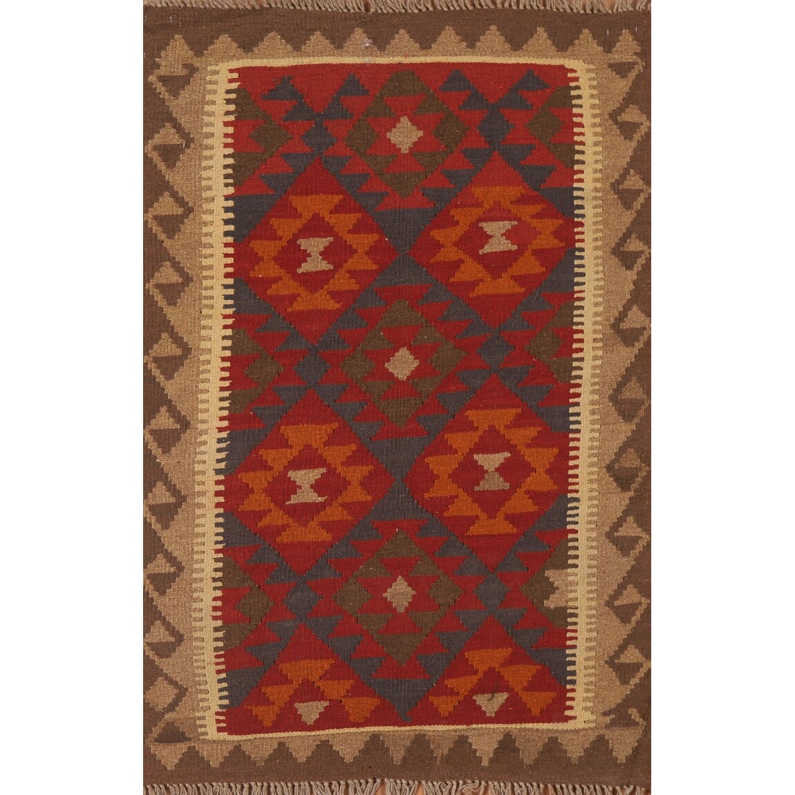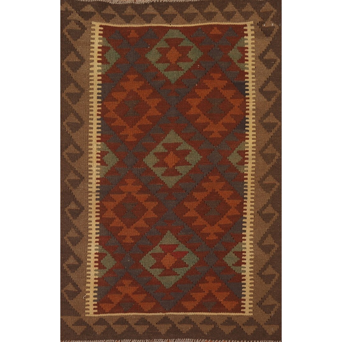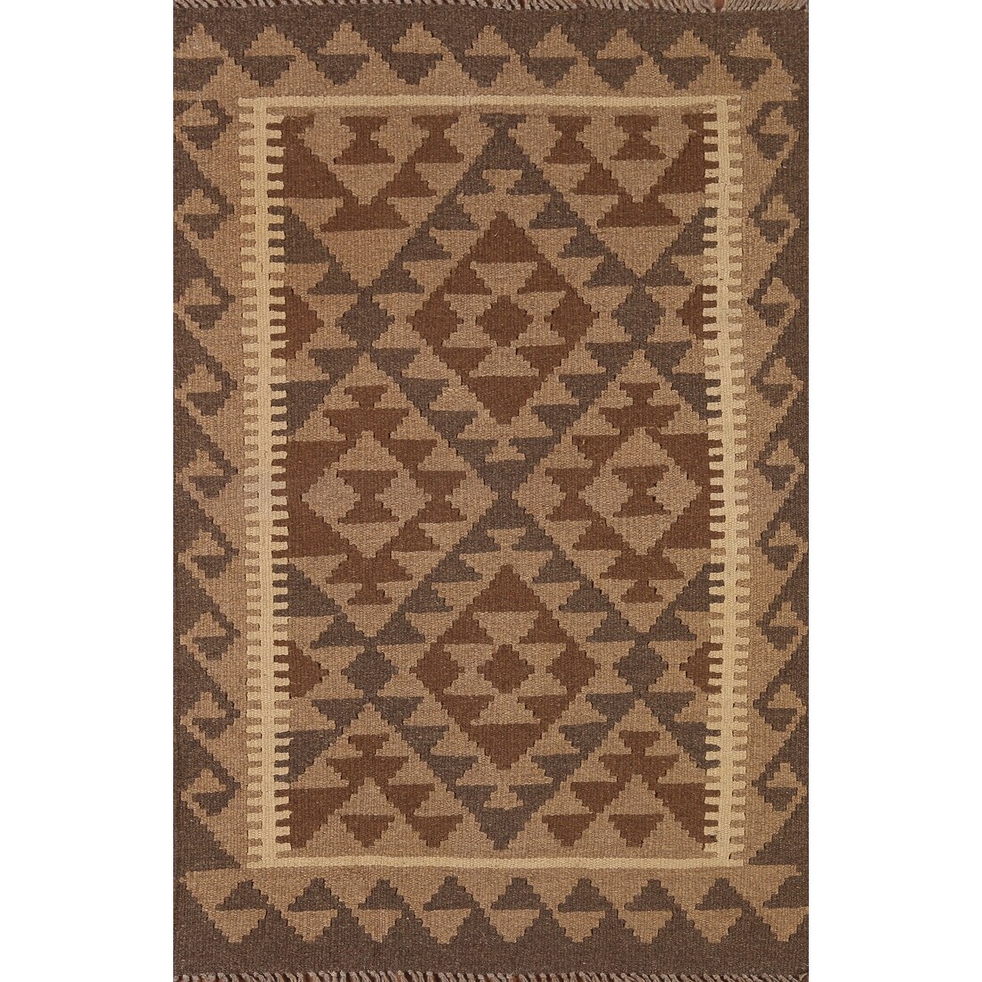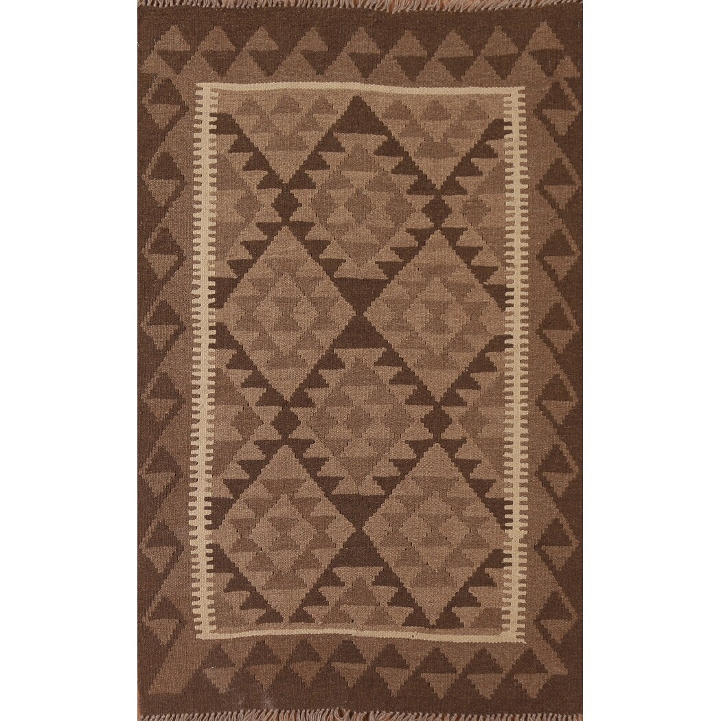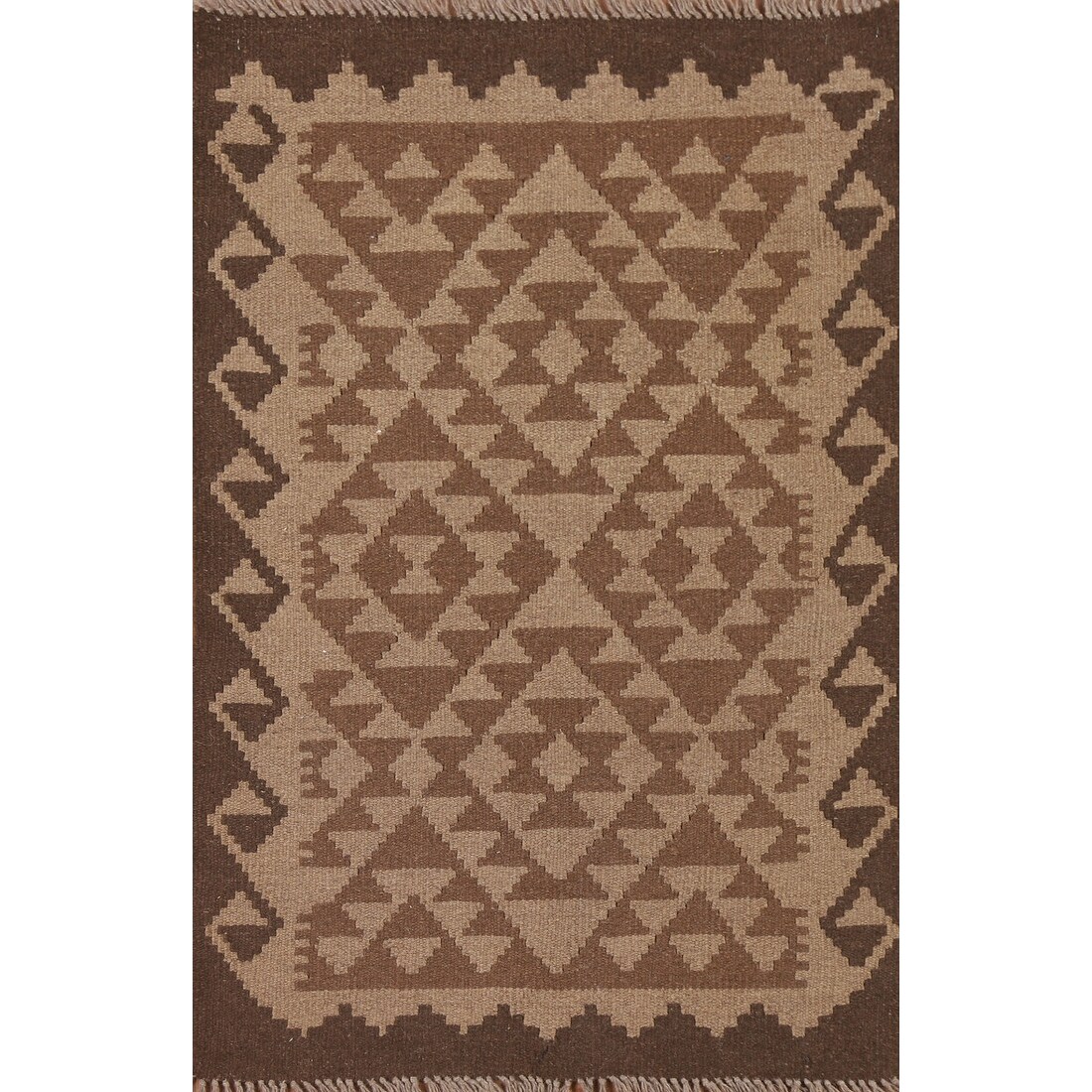 Brown Kilim Reversible Rug Flat-weave Geometric Wool Foyer Carpet - 2'8" x 4'2"
