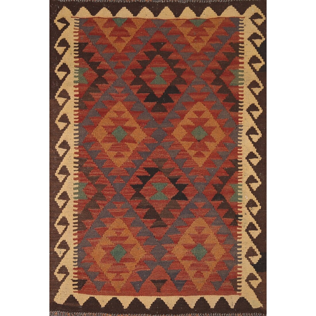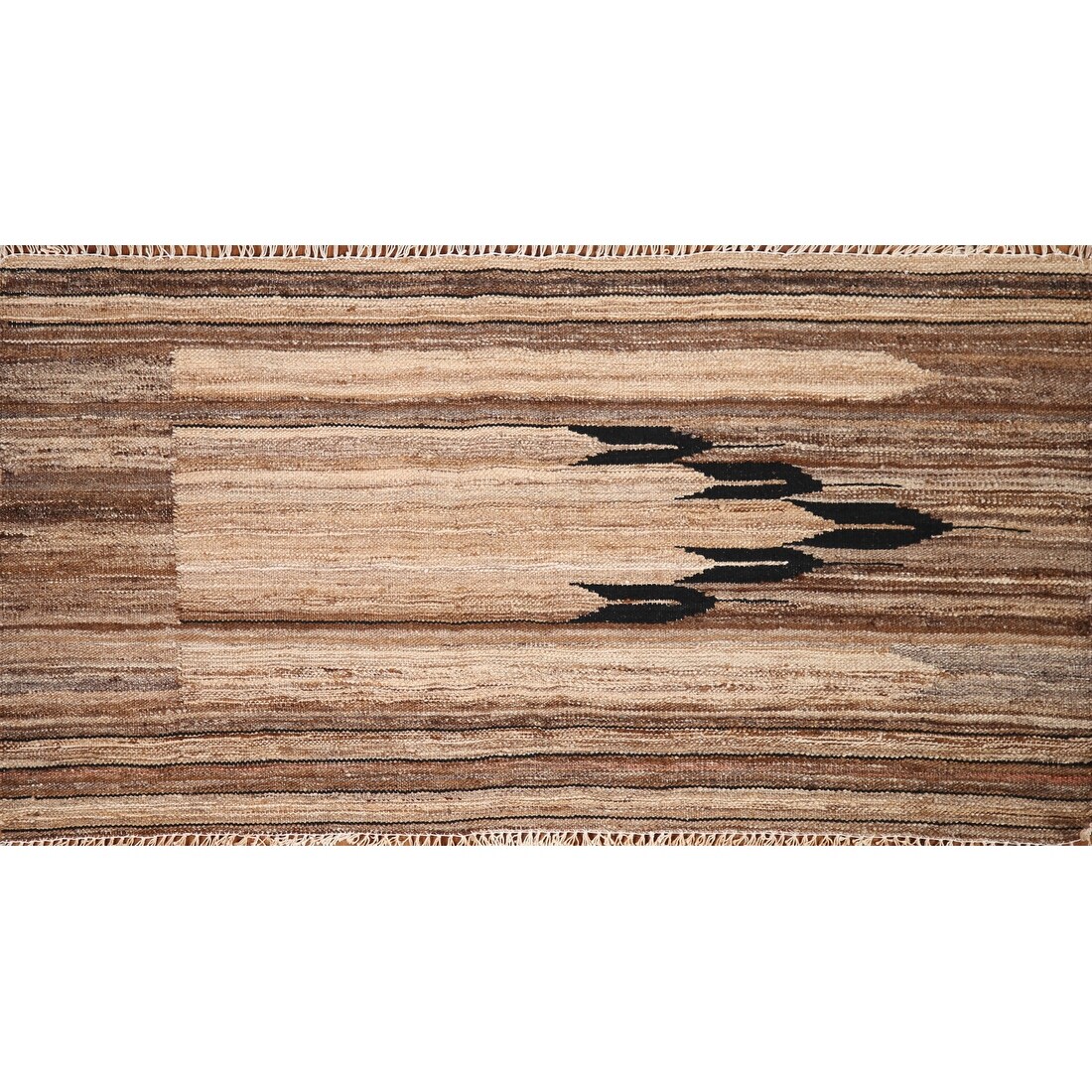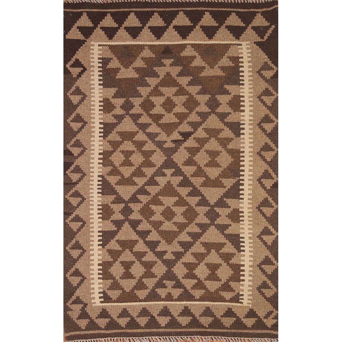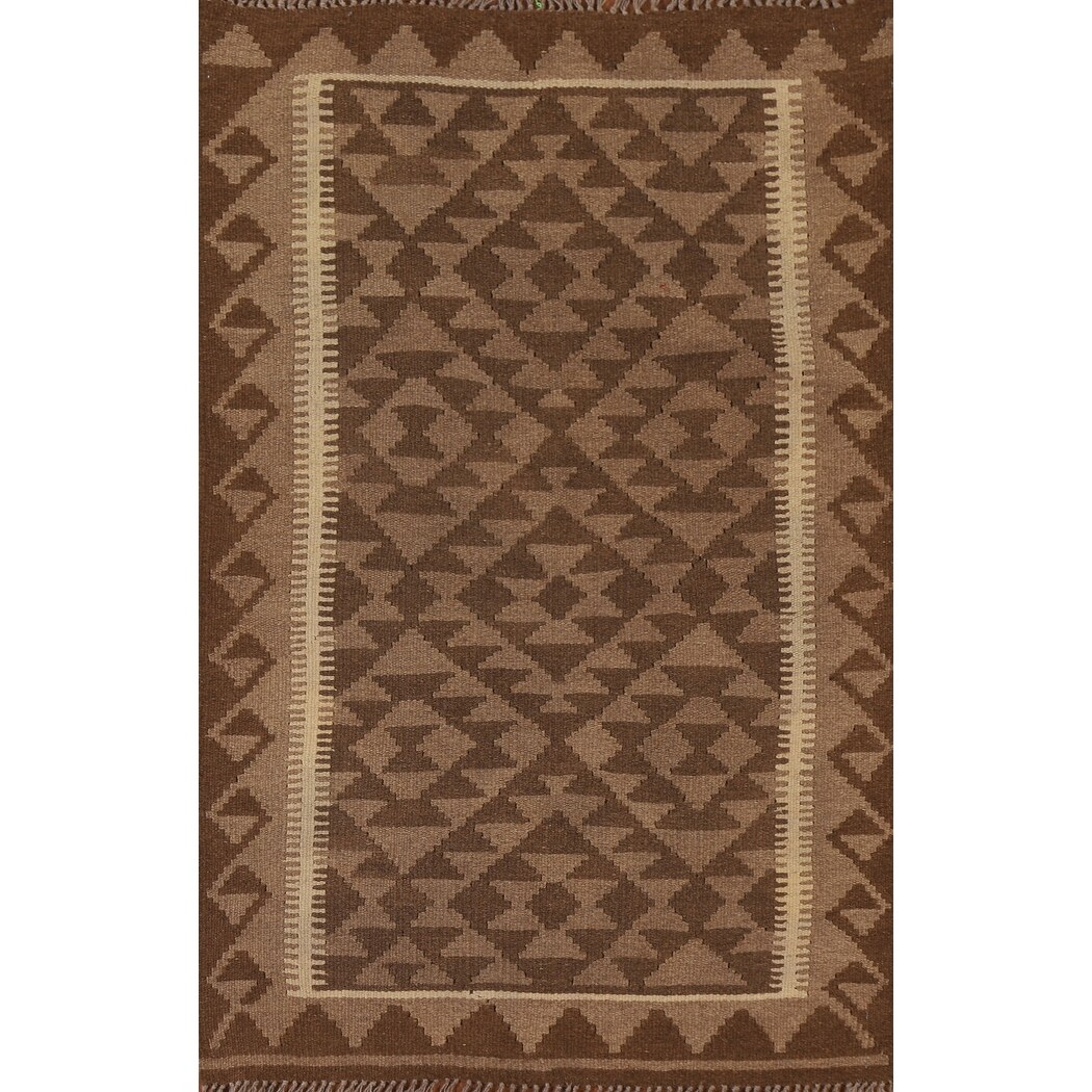 Brown Kilim Reversible Area Rug Flat-weave Wool Carpet - 3'2" x 5'1"