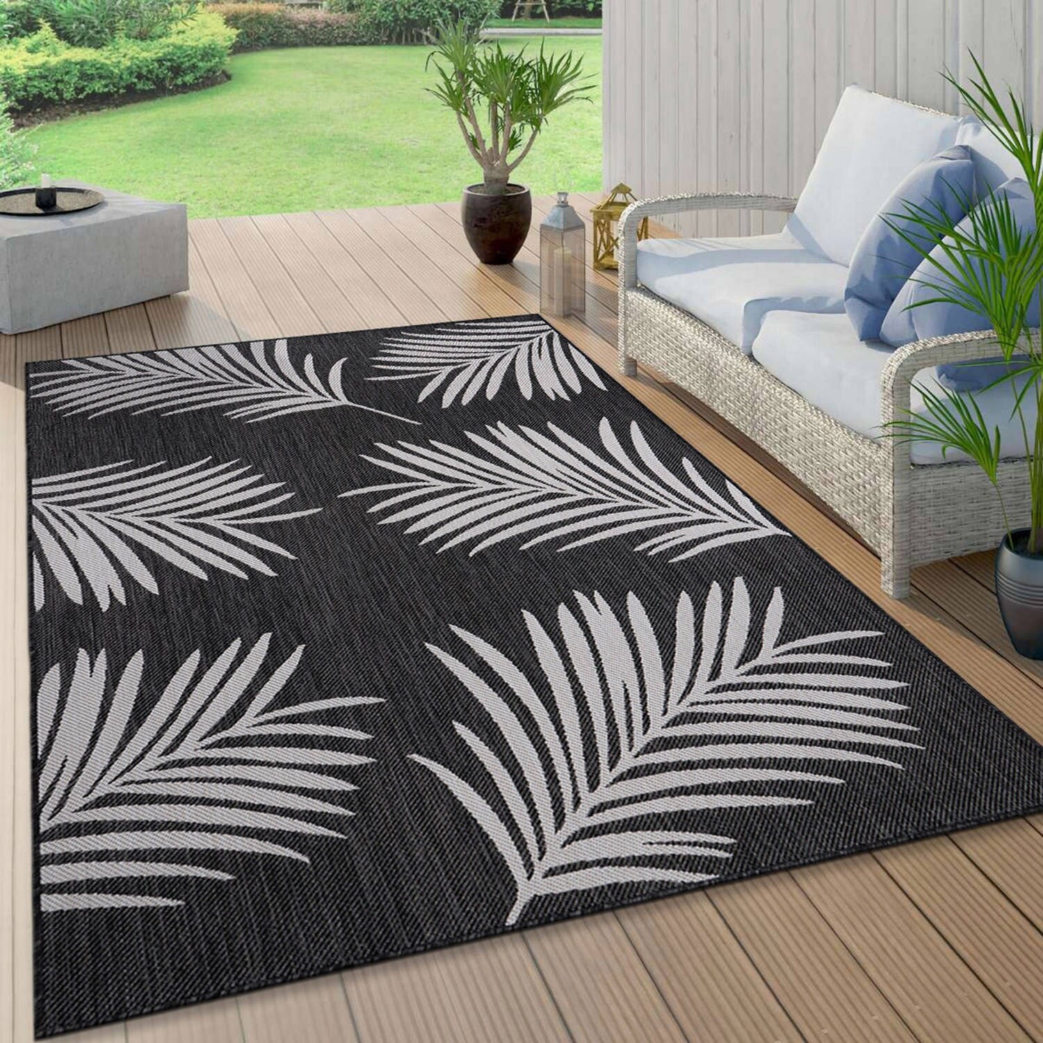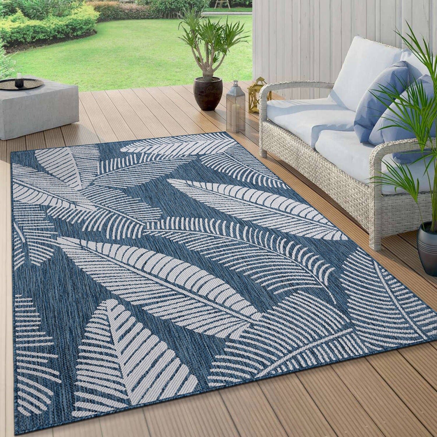 World Rug Gallery Tropical Floral Palm Leaves Textured Flat Weave Indoor/Outdoor Area Rug