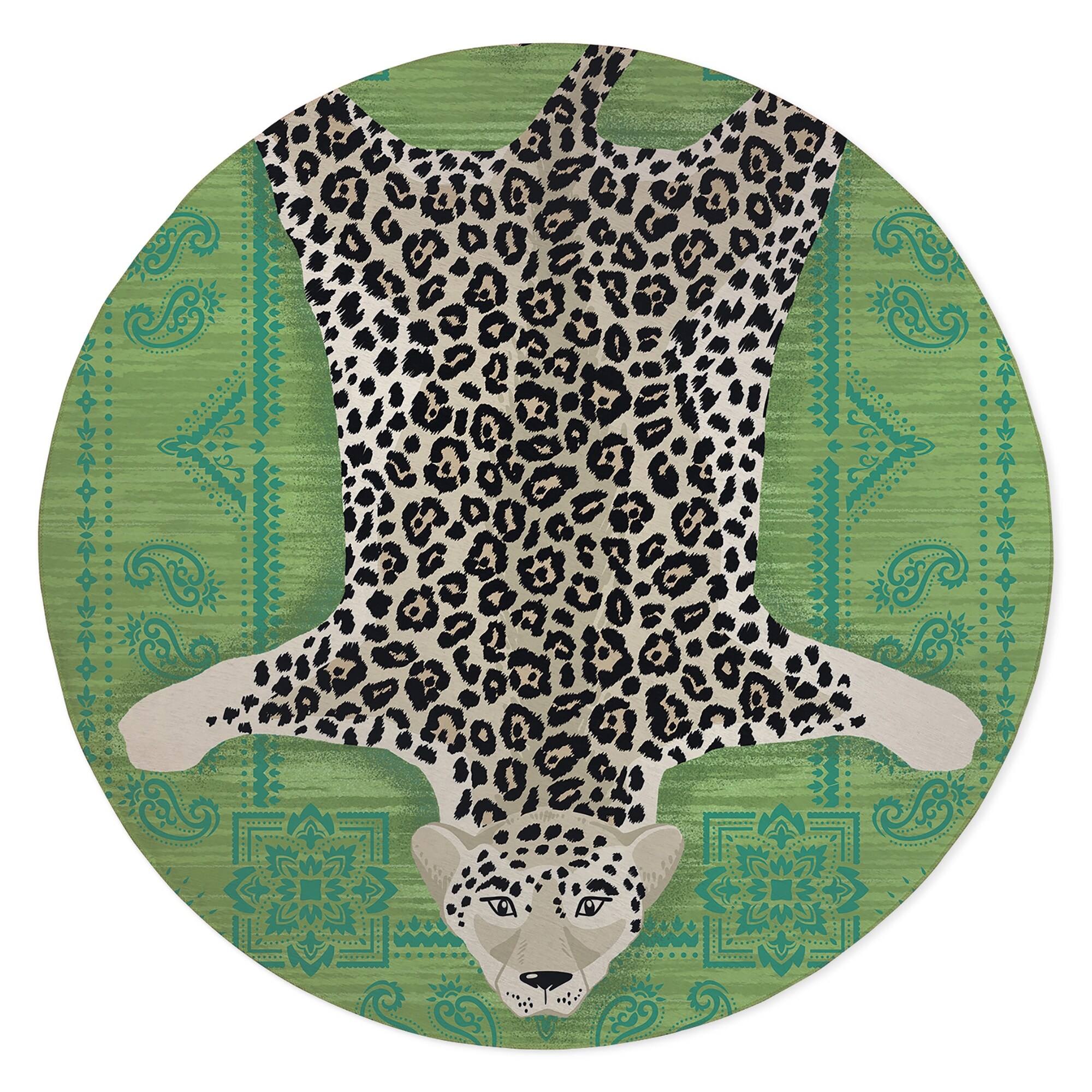 Snow Leopard Green and Teal Jacquard Weave Area Rug By Kavka Designs