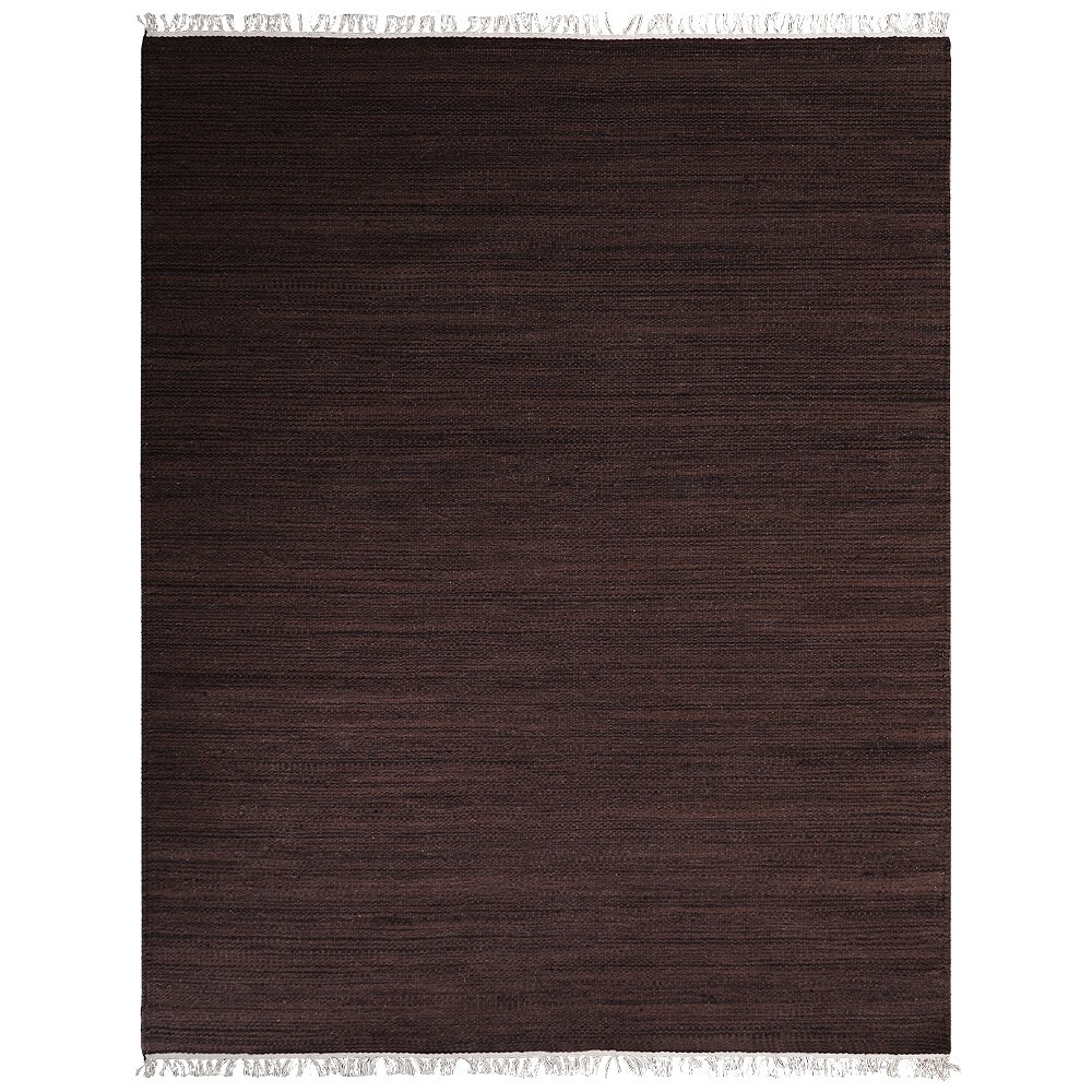 Hand Woven Flat Weave Kilim Wool 8'x10' Area Rug Solid Dark Brown