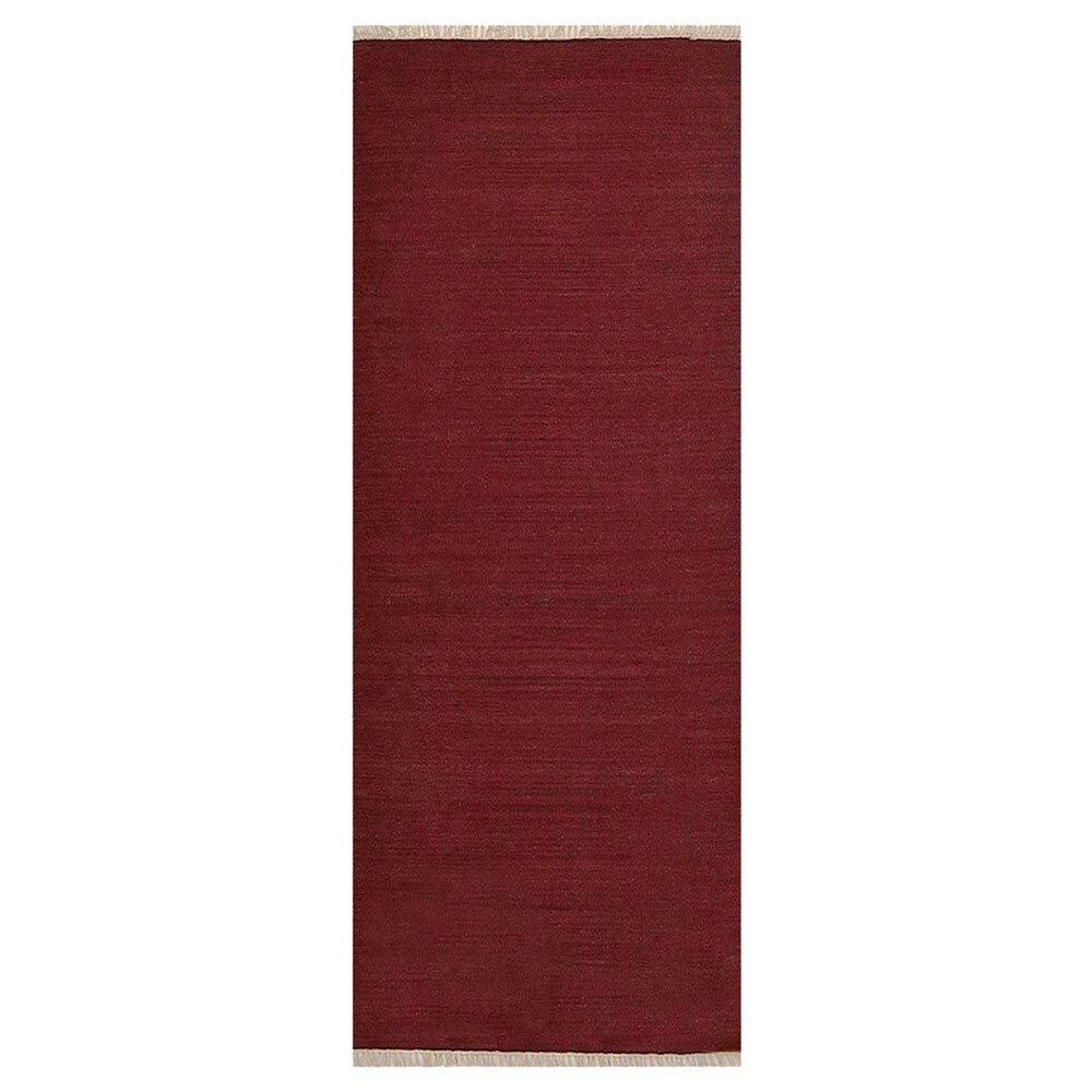 Hand Woven Flat Weave Kilim Wool 3'x5' Area Rug Solid Dark Red