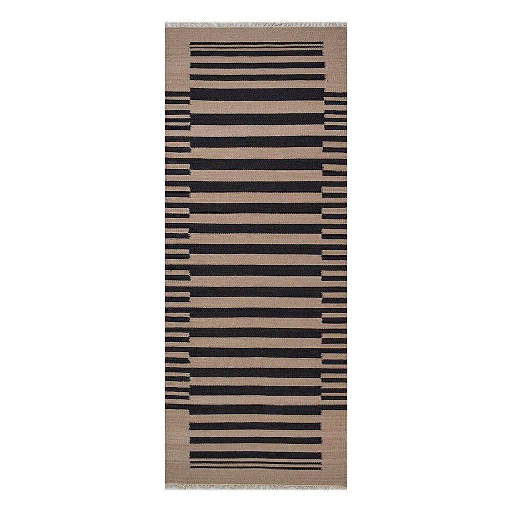Hand Woven Flat Weave Kilim Wool RunnerArea Rug Contemporary Cream Charcoal D00125 - 3'x13'
