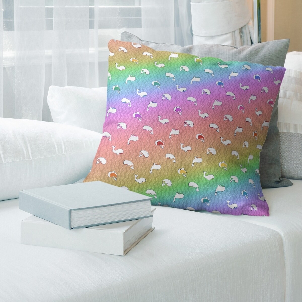 Multicolor Whales Pattern Throw Pillow