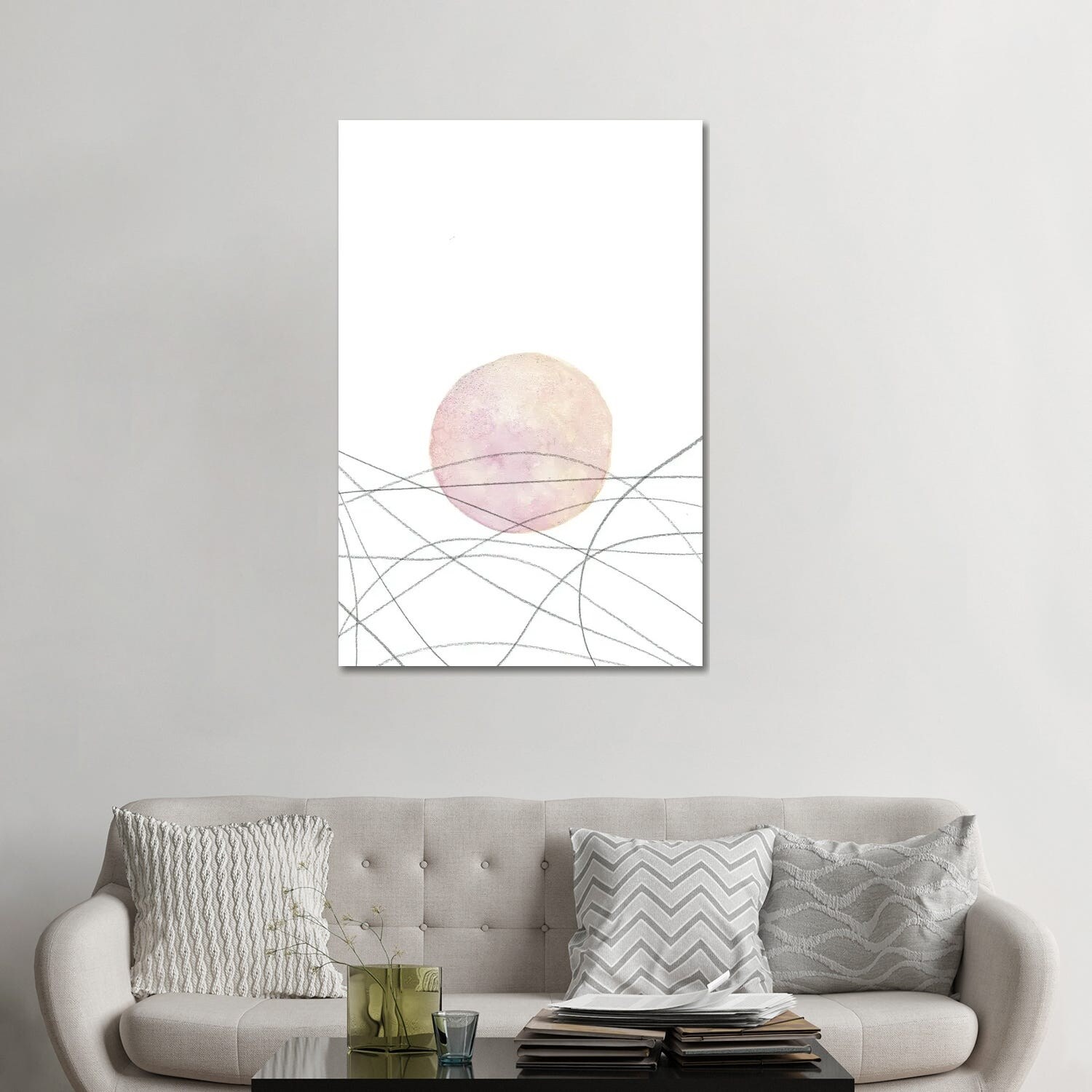 iCanvas "Dusty Pink Sun And Line-Art Sea" by Whales Way Canvas Print