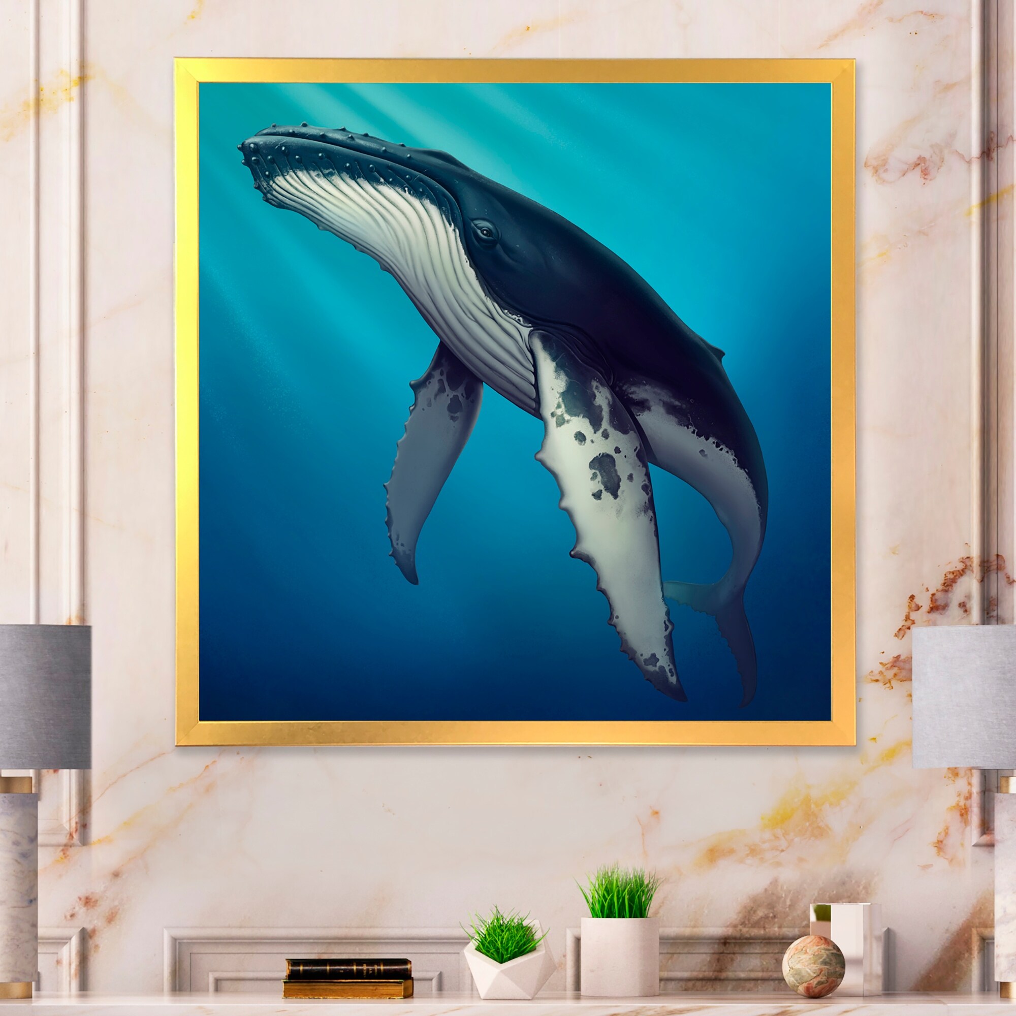 Designart "Whale In the Ocean II" Nautical & Coastal Framed Art Print