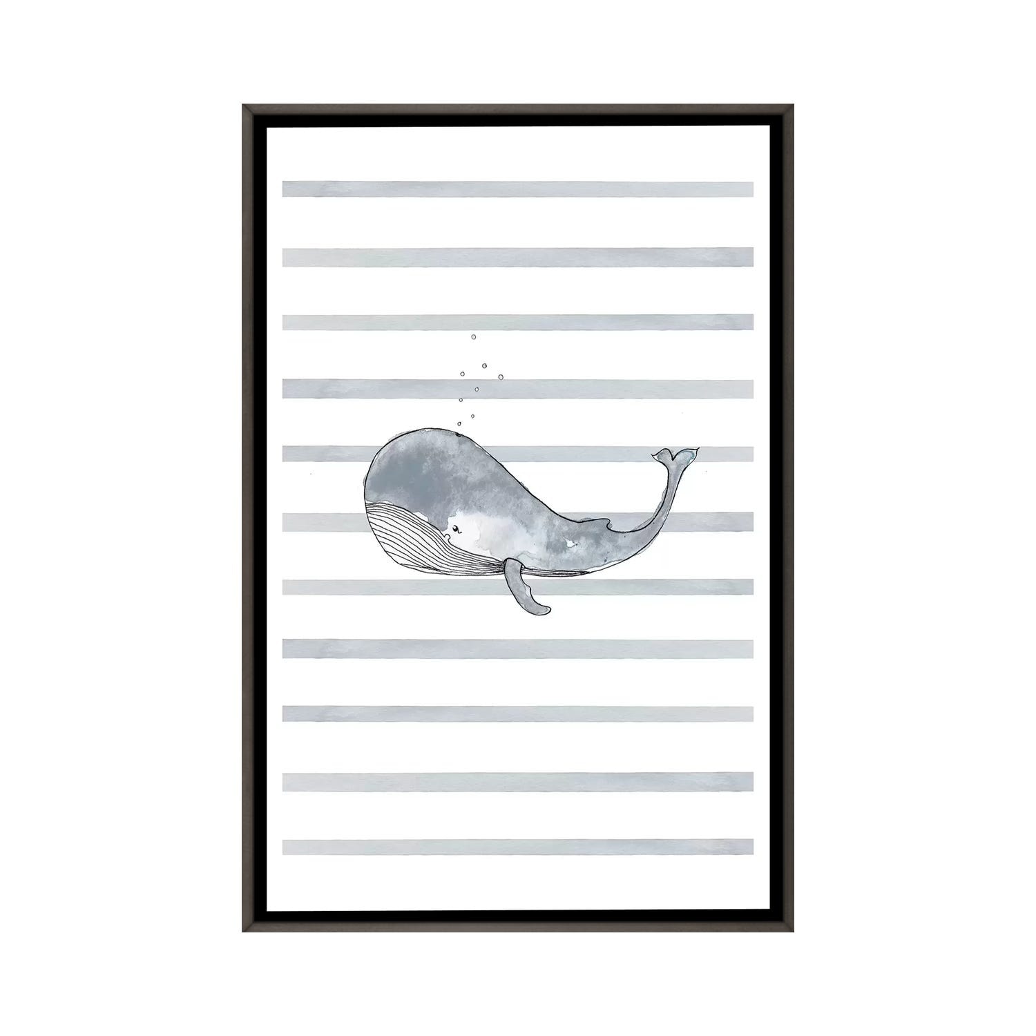 iCanvas "Whale Left Stripes I" by Leah Straatsma Framed