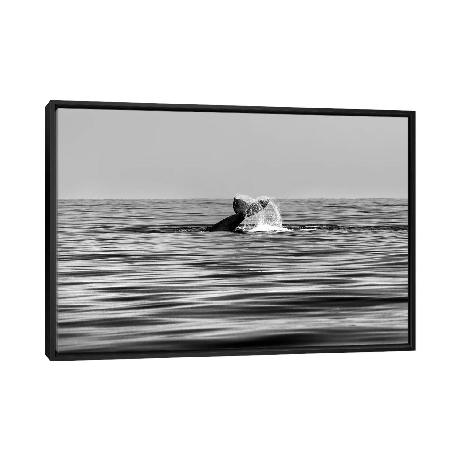 iCanvas "Whale-Of-A-Tail In Black And White" by Sean Davey Framed