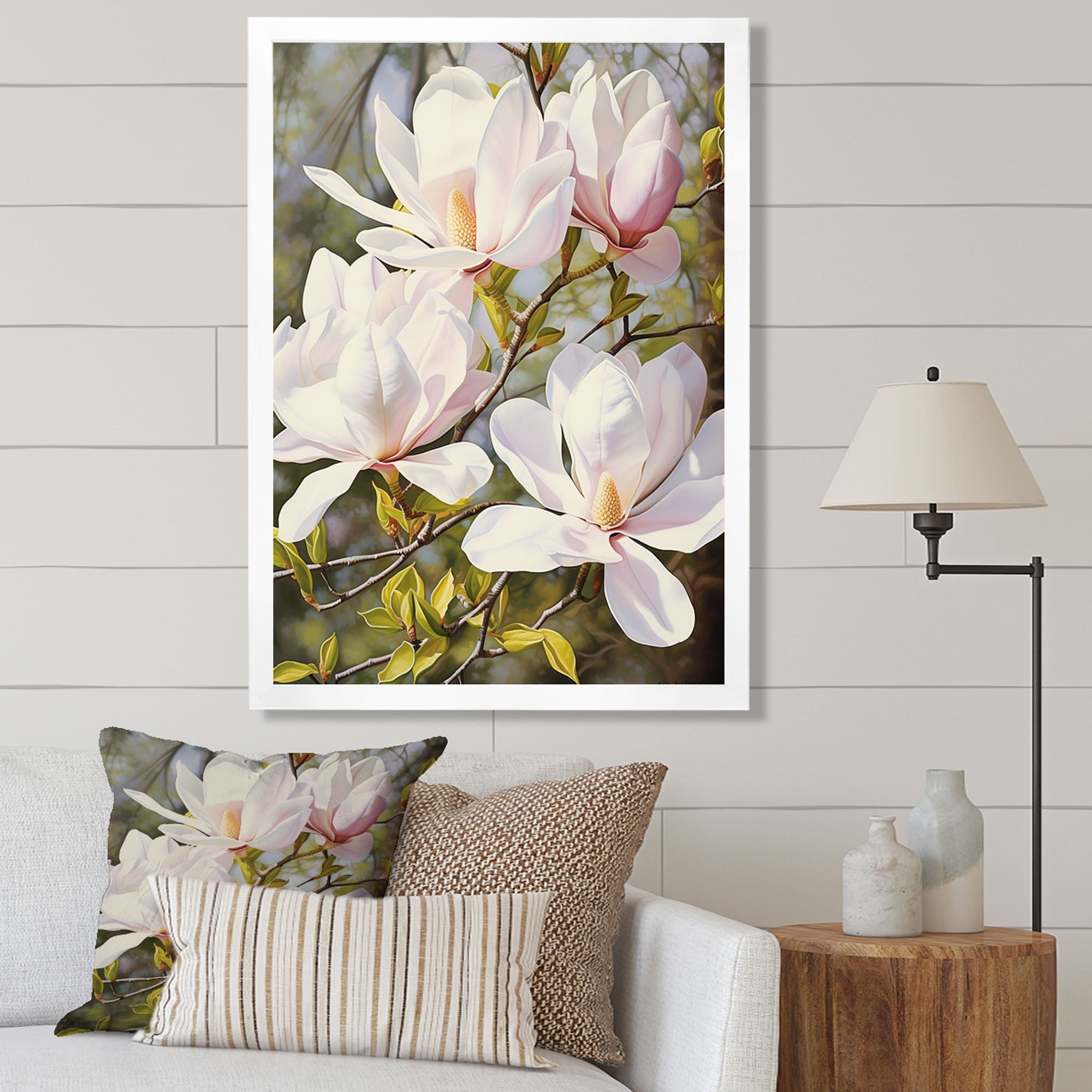 Designart "White Pink Magnolias Magnolia Tranquility" Magnolias Framed Canvas Art Print
