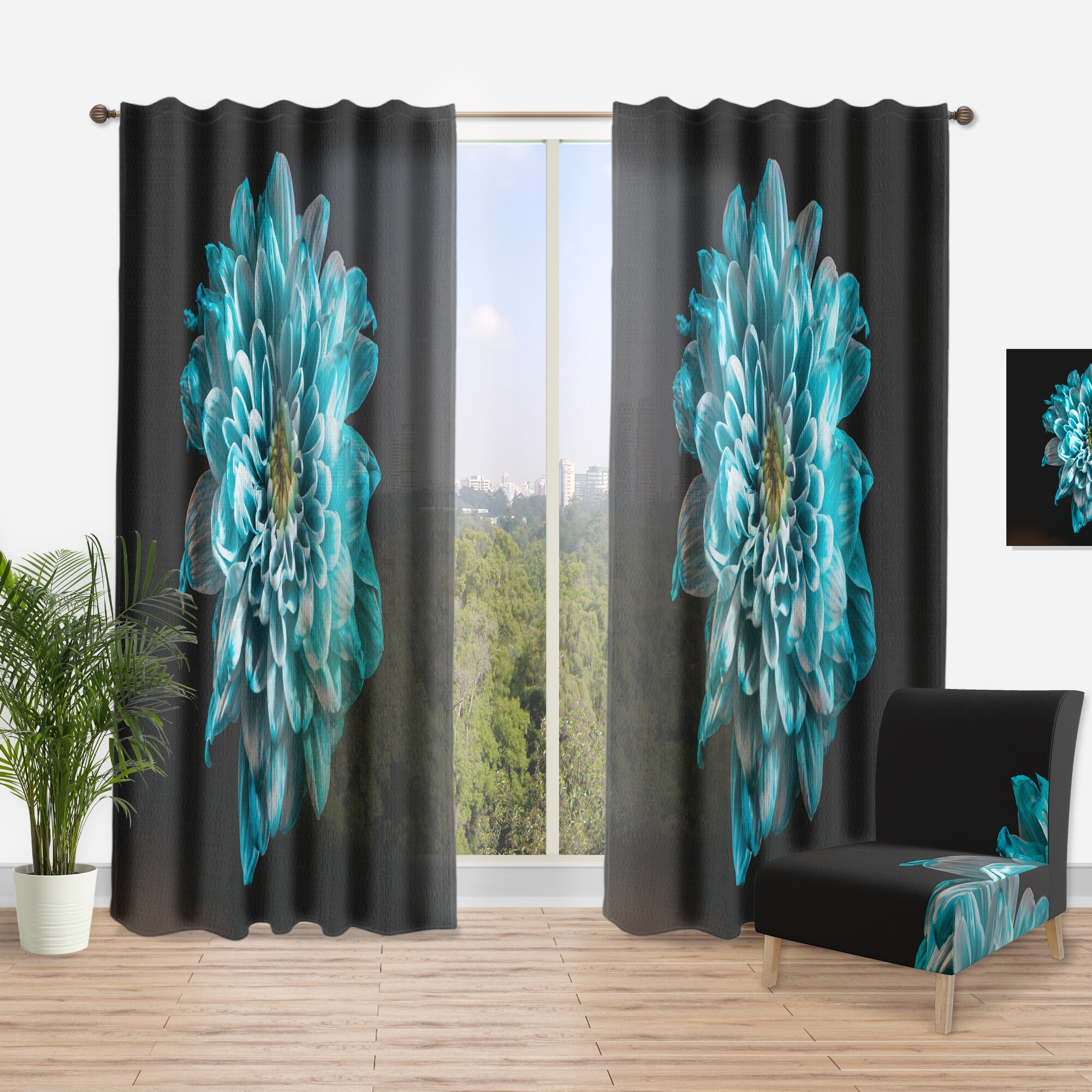 Designart 'Close Up of Flower With Blue and White Petals' Traditional Curtain Single Panel