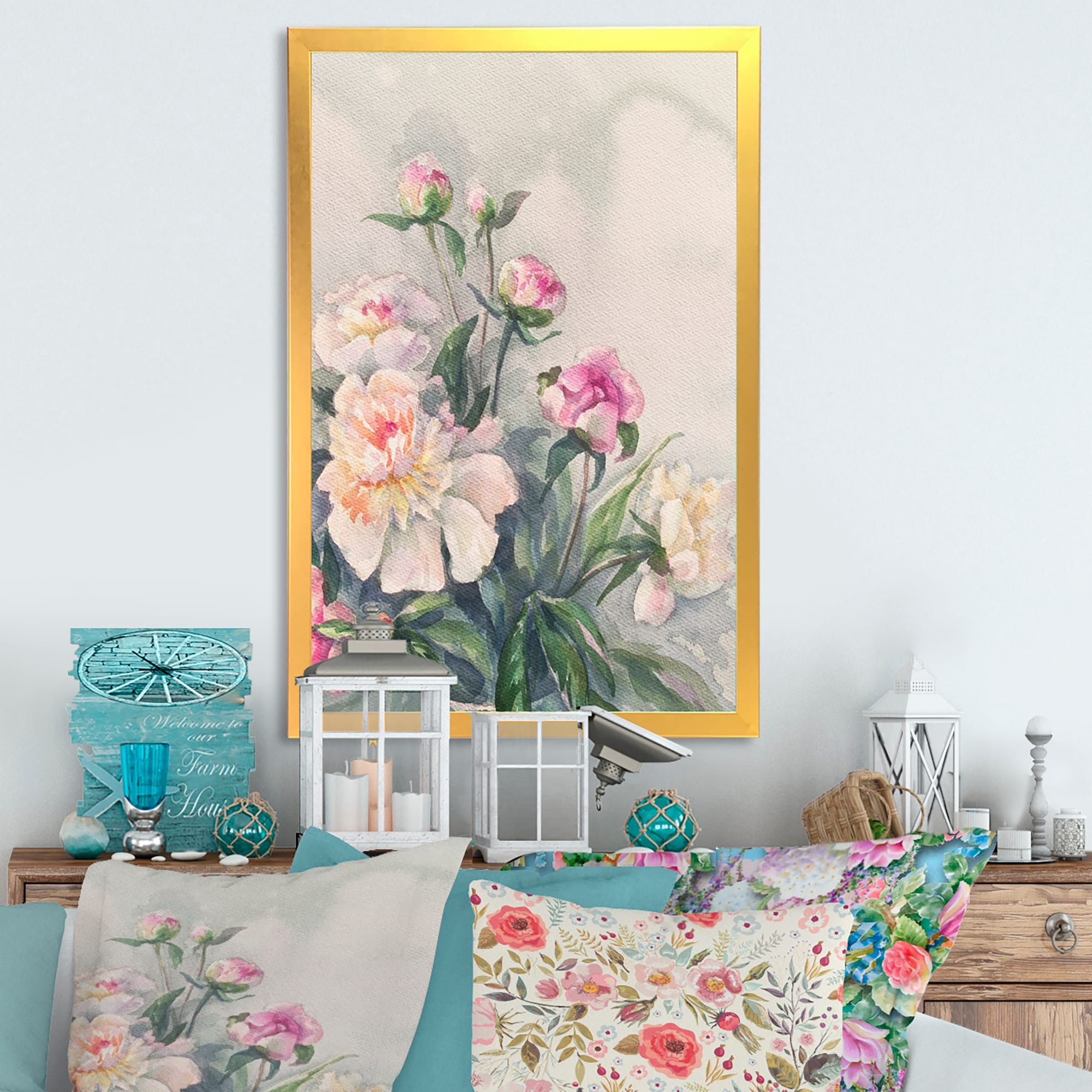 Designart "White Pink Peonies Bunch" Traditional Framed Wall Decor