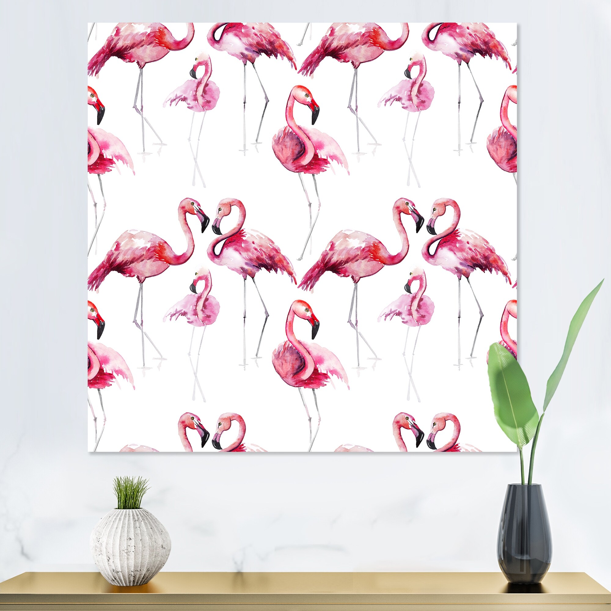 Designart "Pink Flamingos on White I" Patterned Canvas Wall Art Print