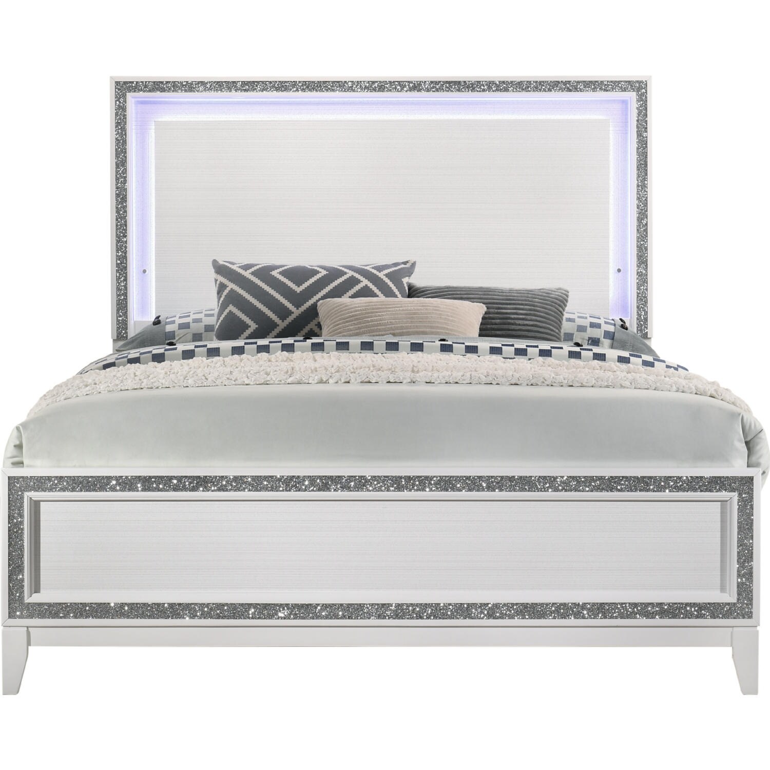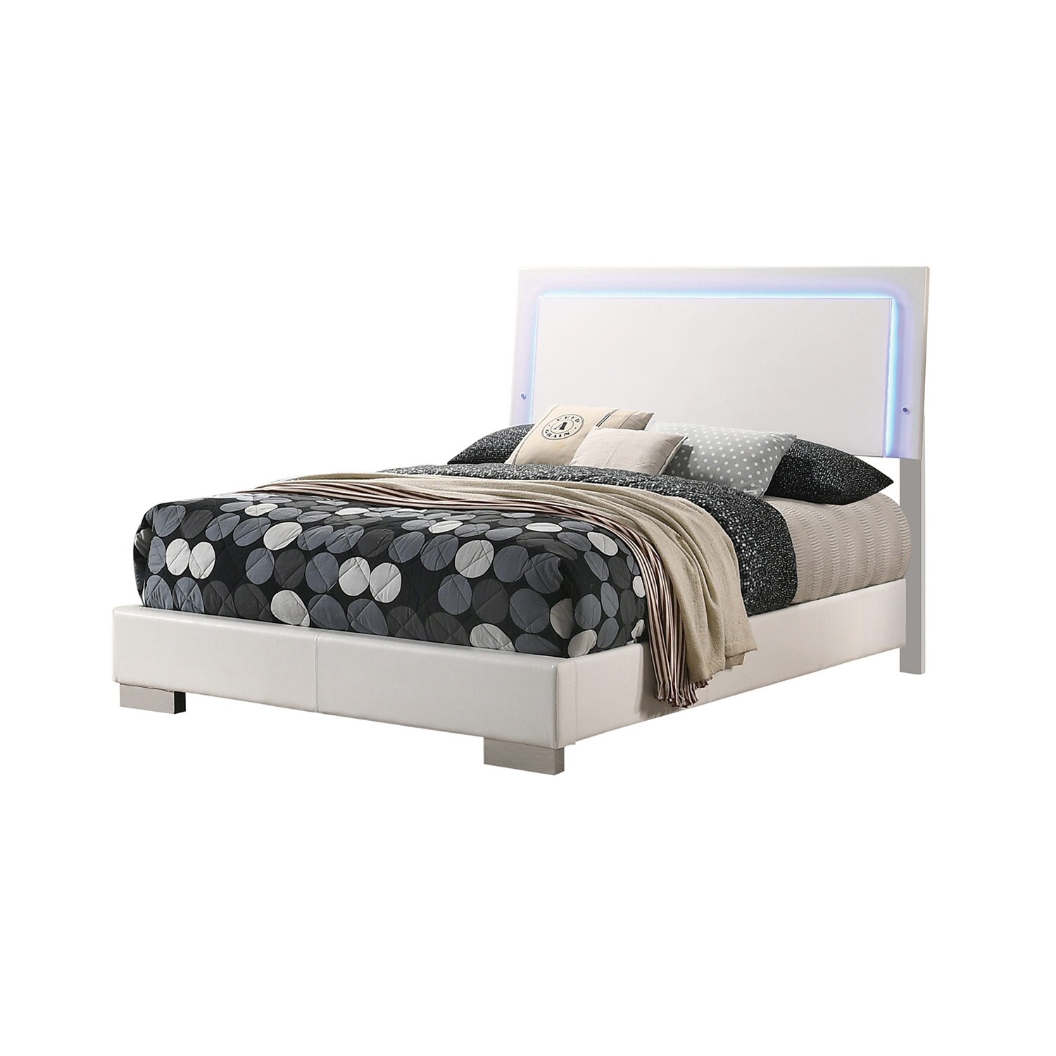 Coaster Furniture Felicity Glossy White Panel Bed with LED Lighting