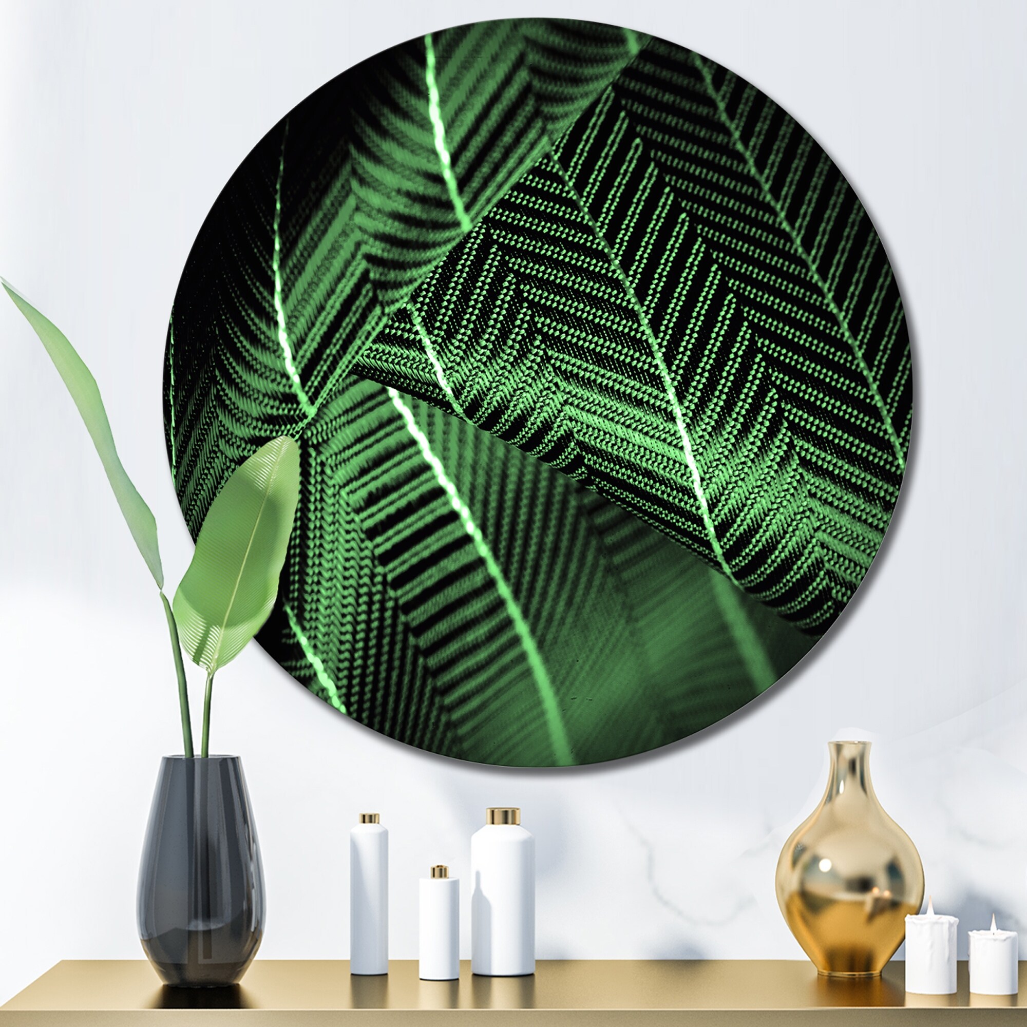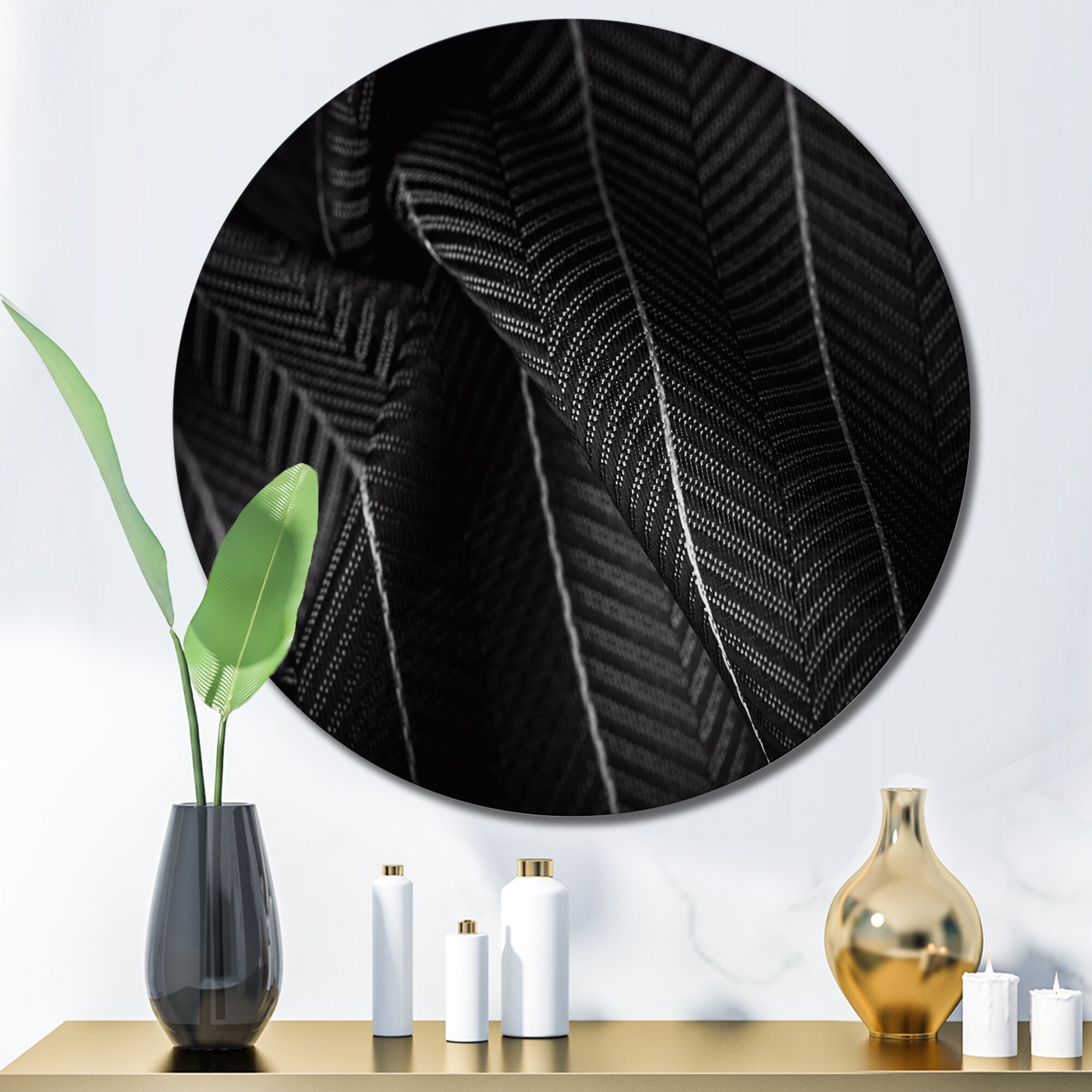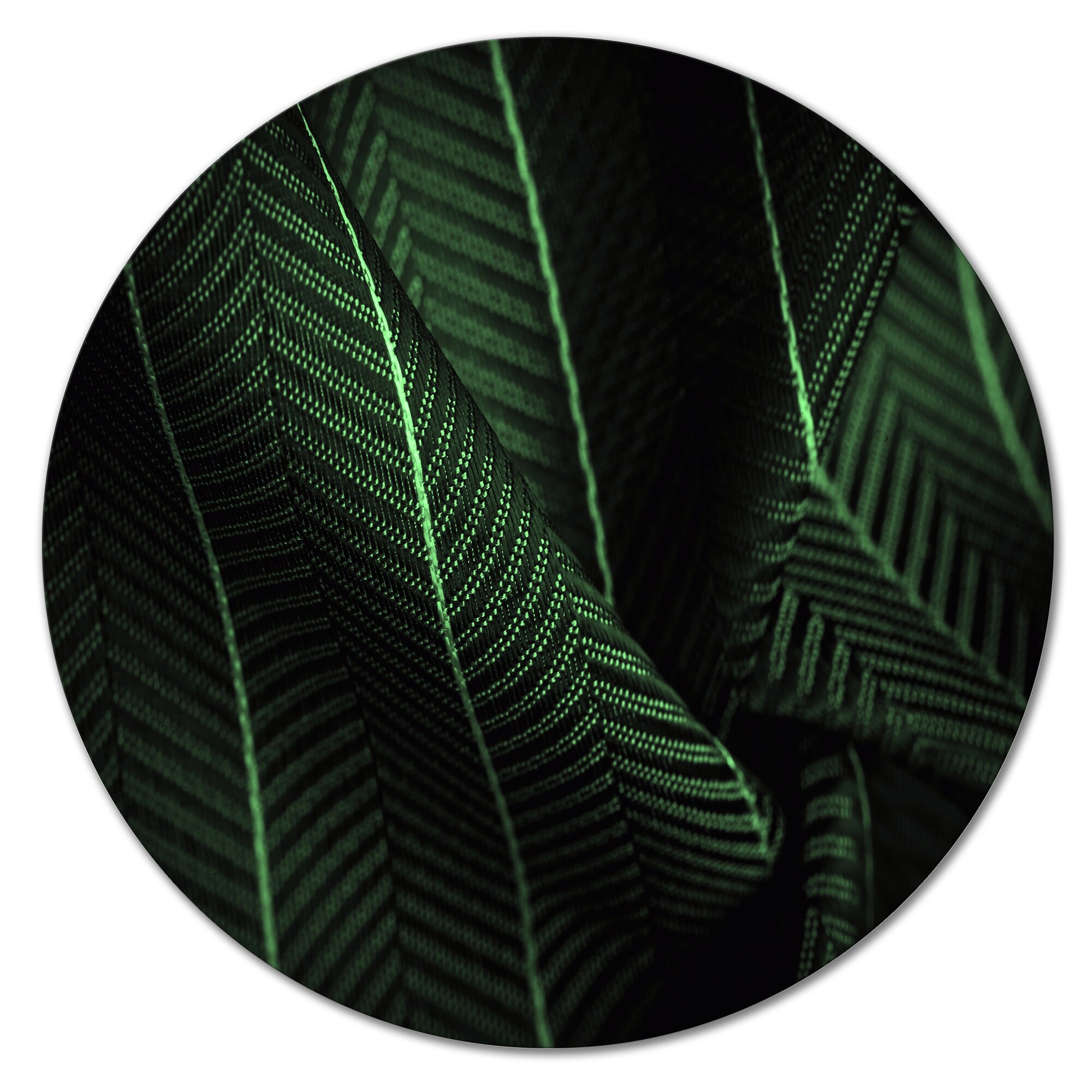 Designart 'Deep Green Silk Fabric With A Thin White Stripe I' Patterned Metal Circle Wall Art
