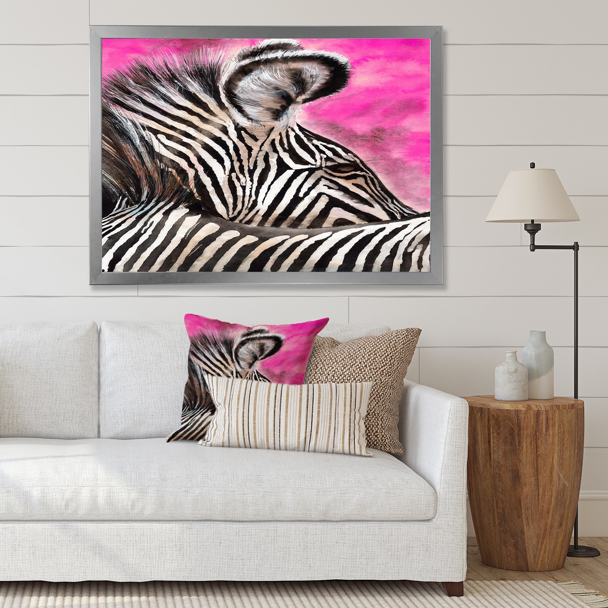 Designart "Zebra With Contrasting Black And White Stripes I" Traditional Framed Canvas Wall Art Print