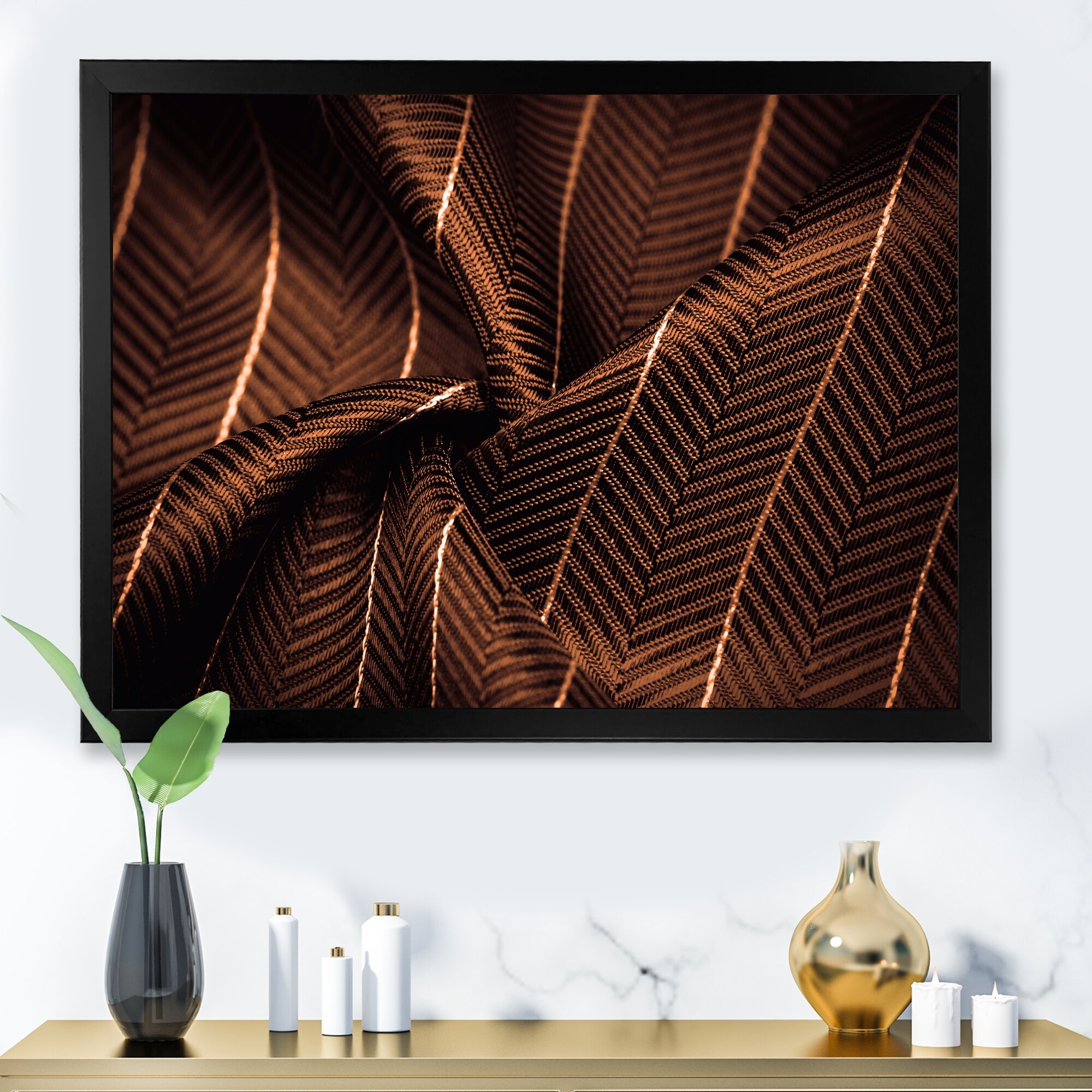 Designart "Noble Green Silk Fabric With A Thin White Stripe" Patterned Framed Art Print