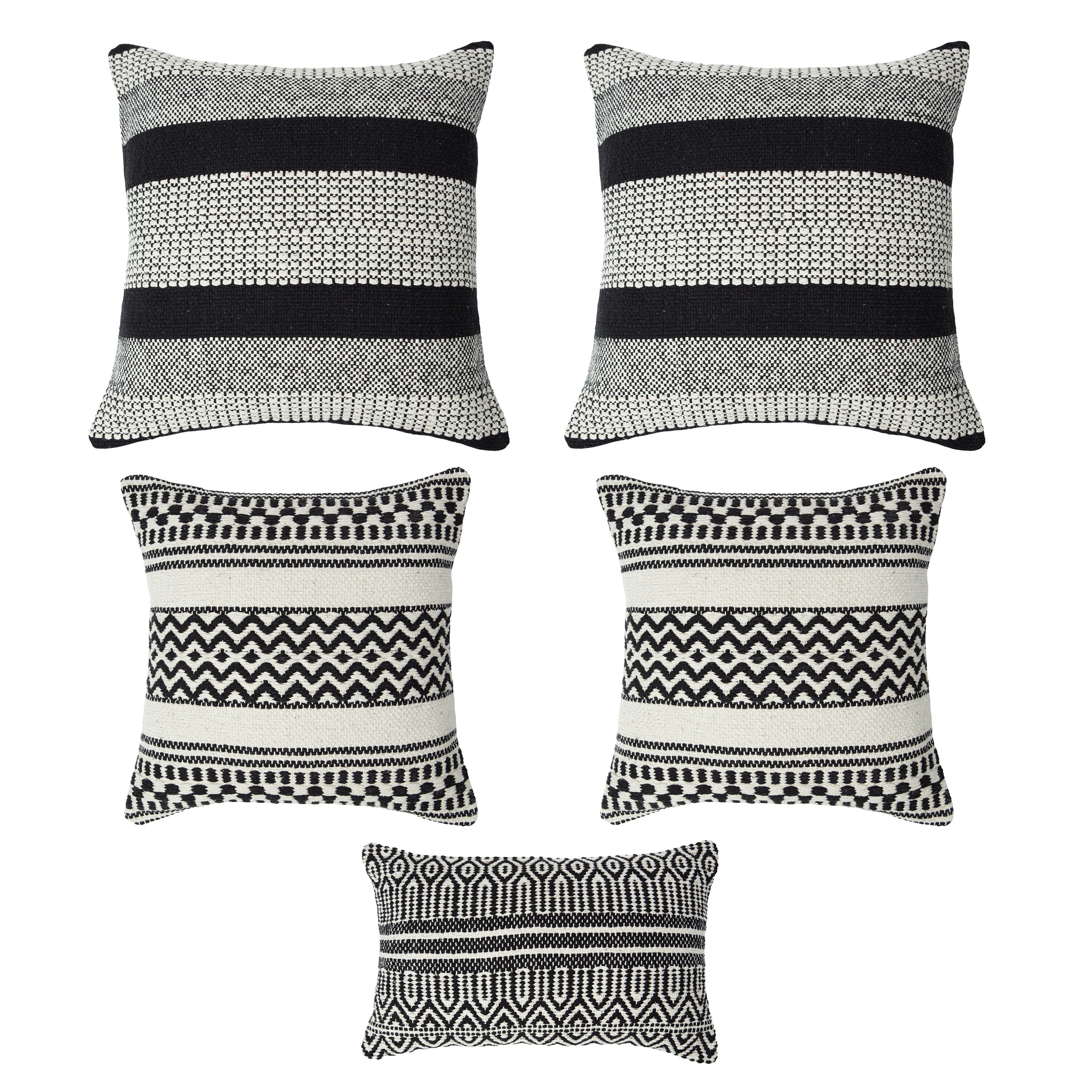 Chanasya 5-Piece Jacquard Cotton Black White Stripe Throw Pillow Cover Set