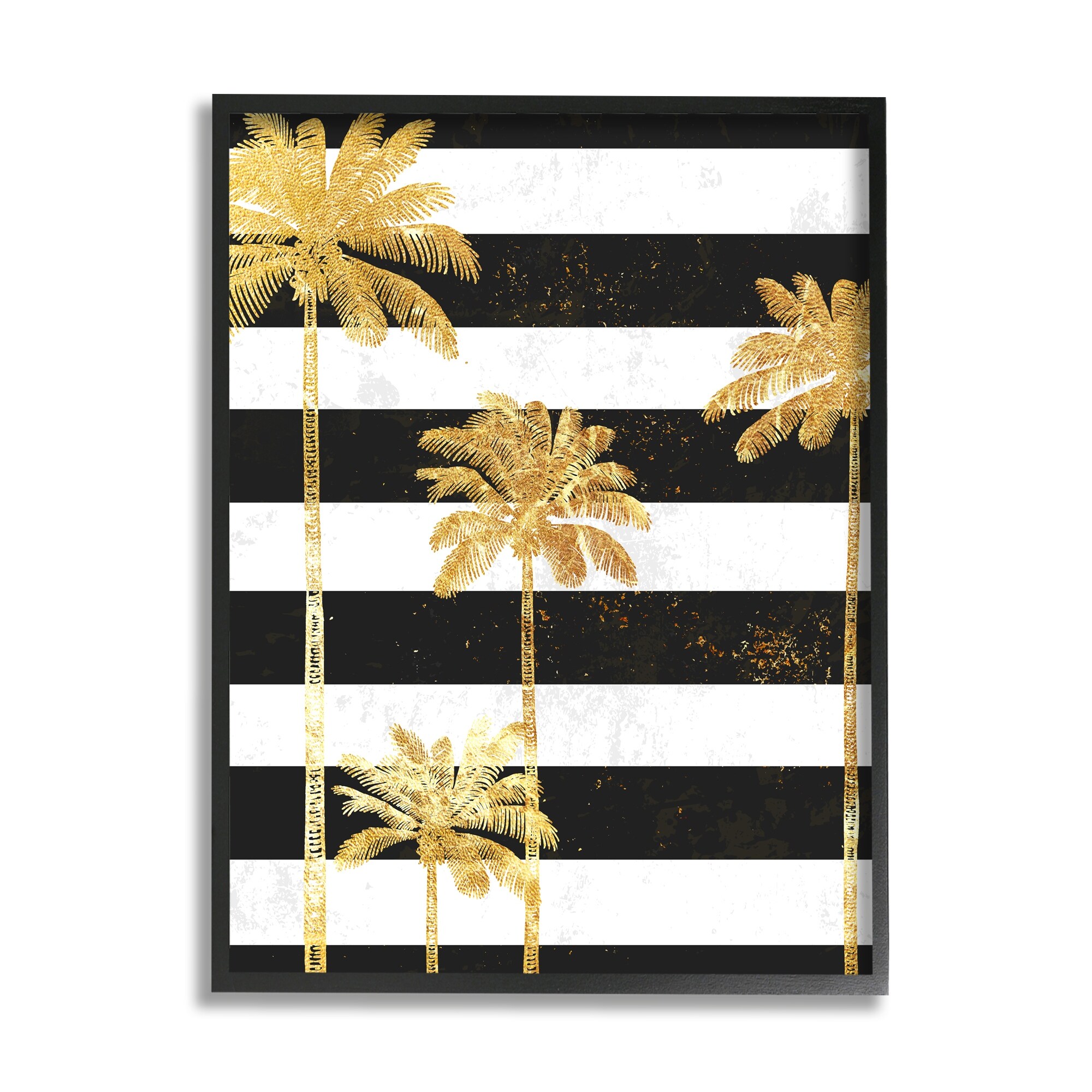 Stupell Industries Golden Palm Trees Bold Black White Stripes Framed Wall Art