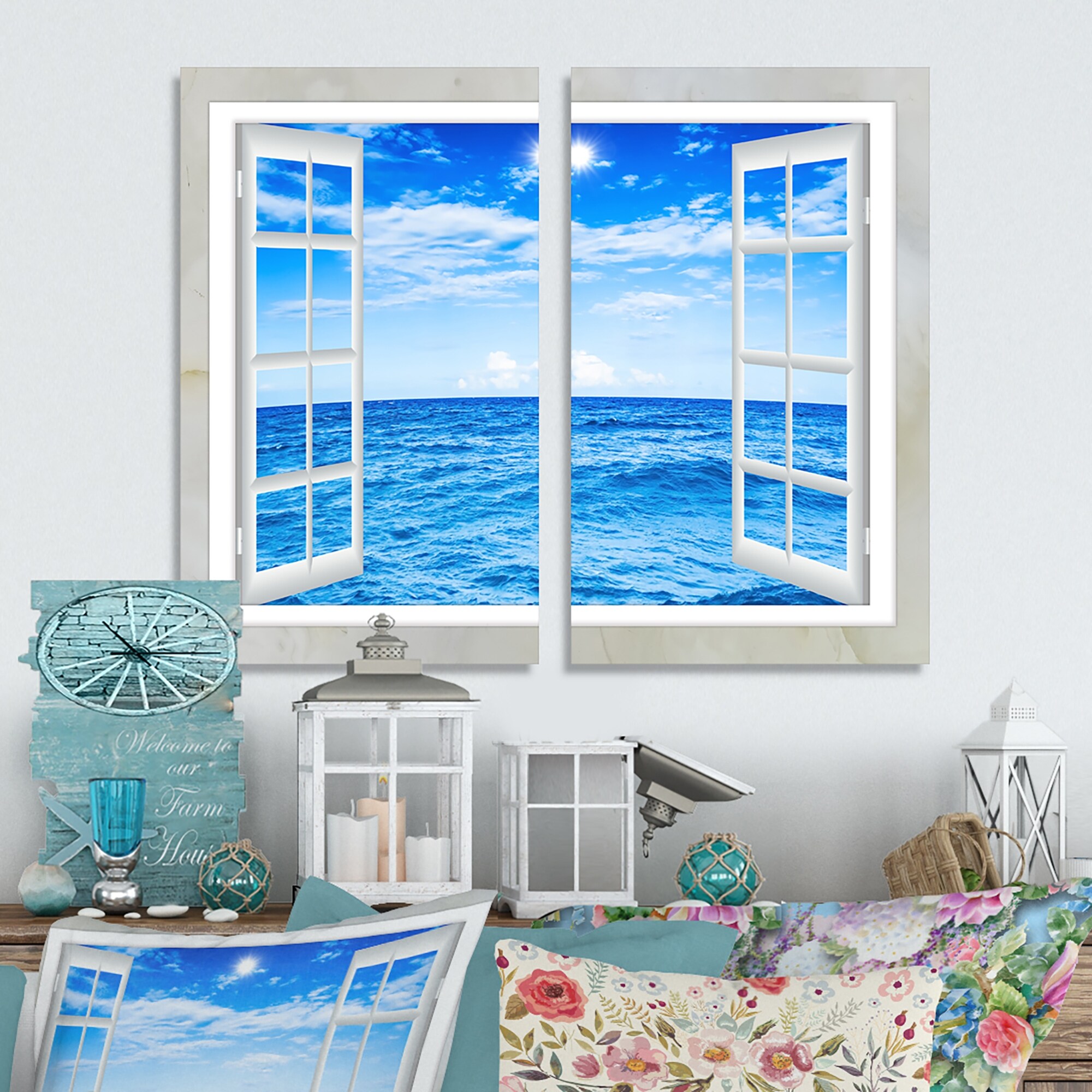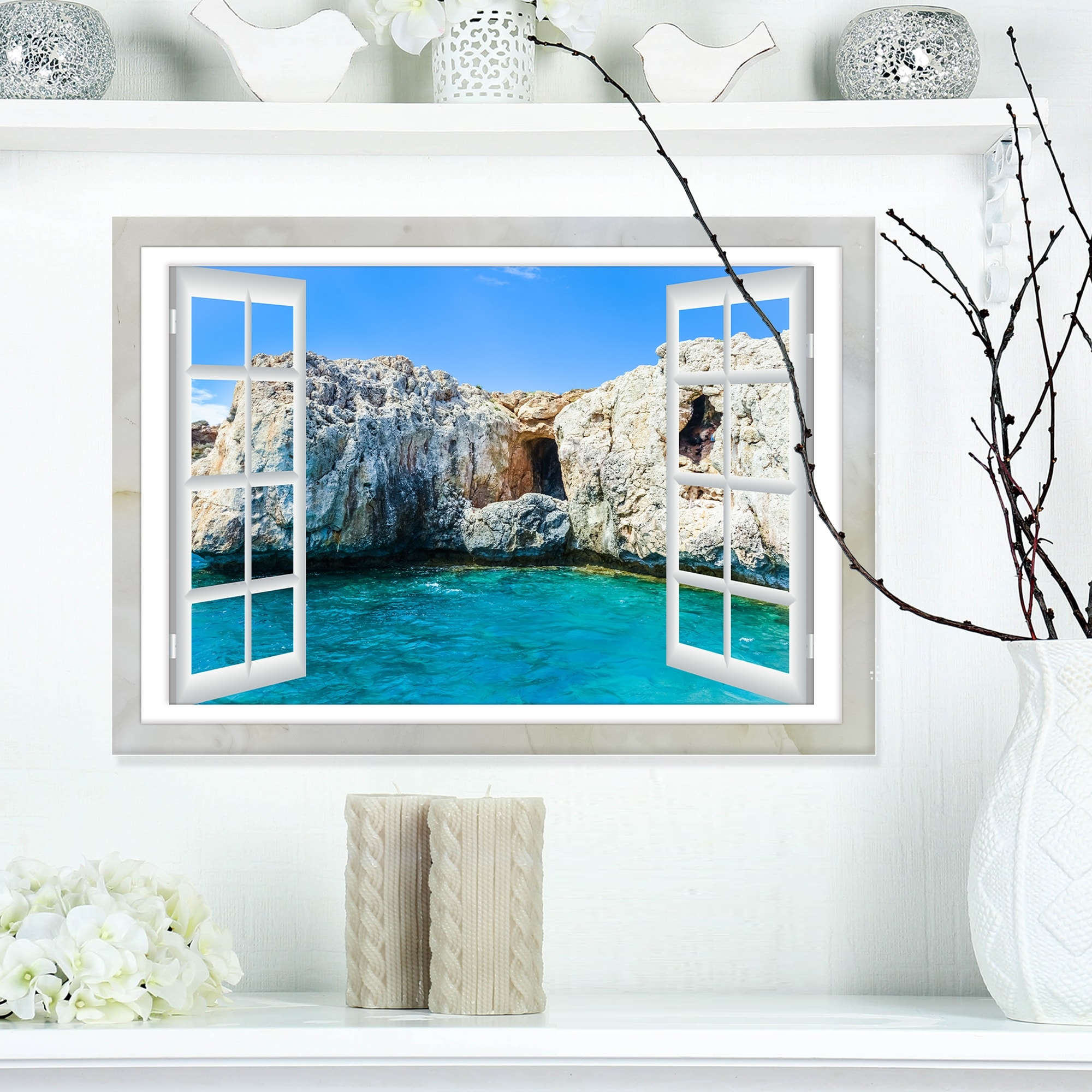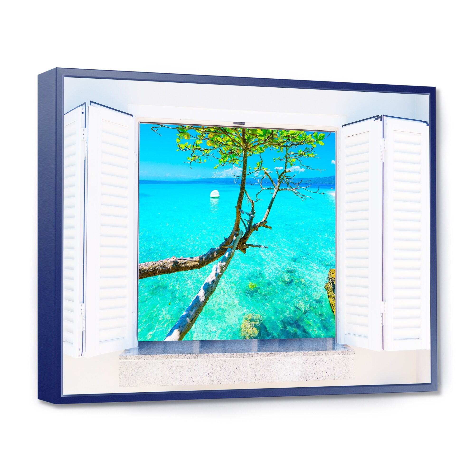 Open Window to Blue Seashore - Oversized Landscape Wall Art Print