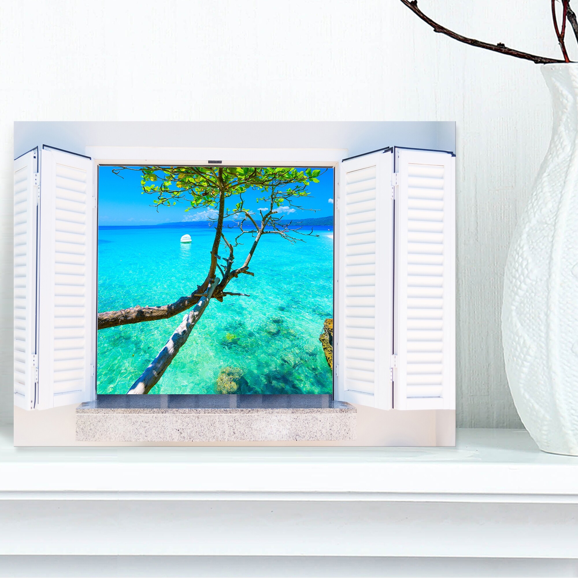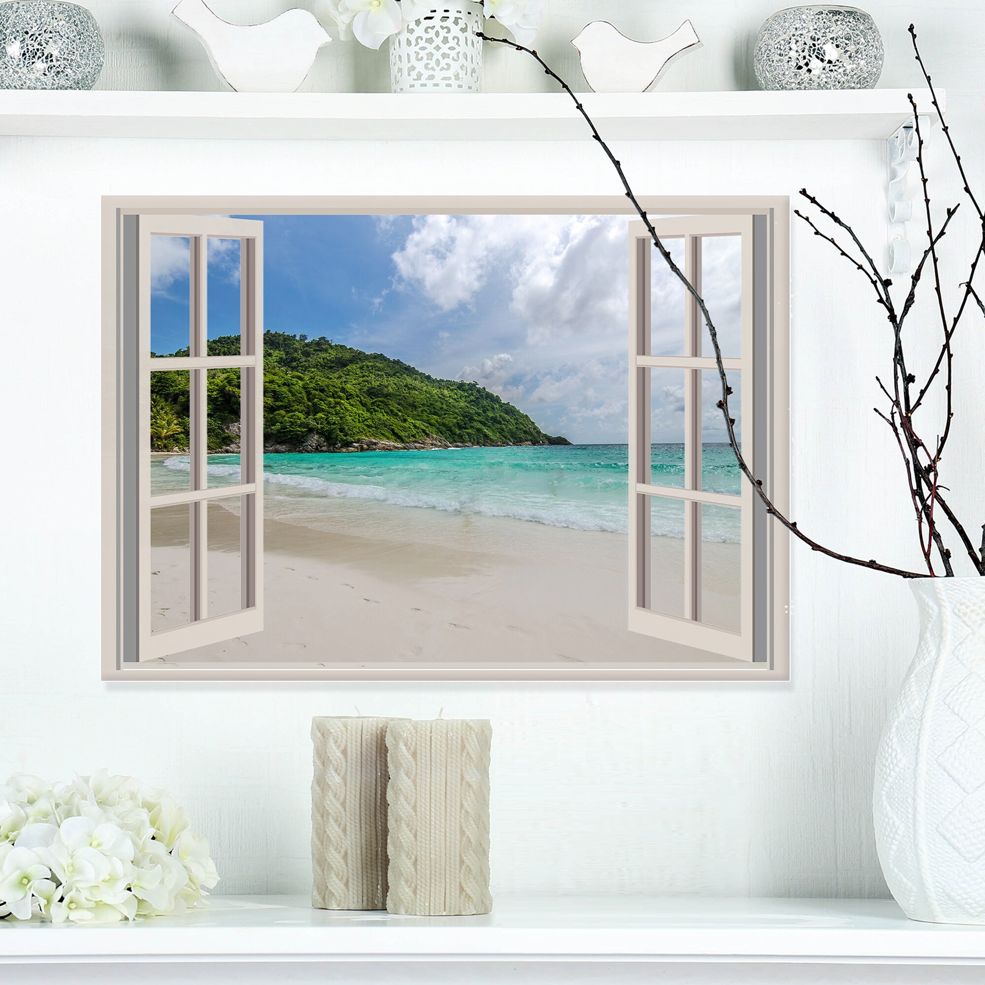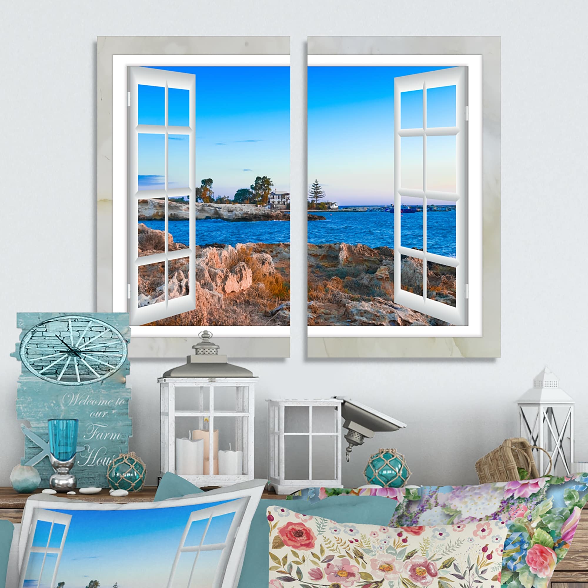 Open Window to Blue Seashore - Oversized Landscape Wall Art Print
