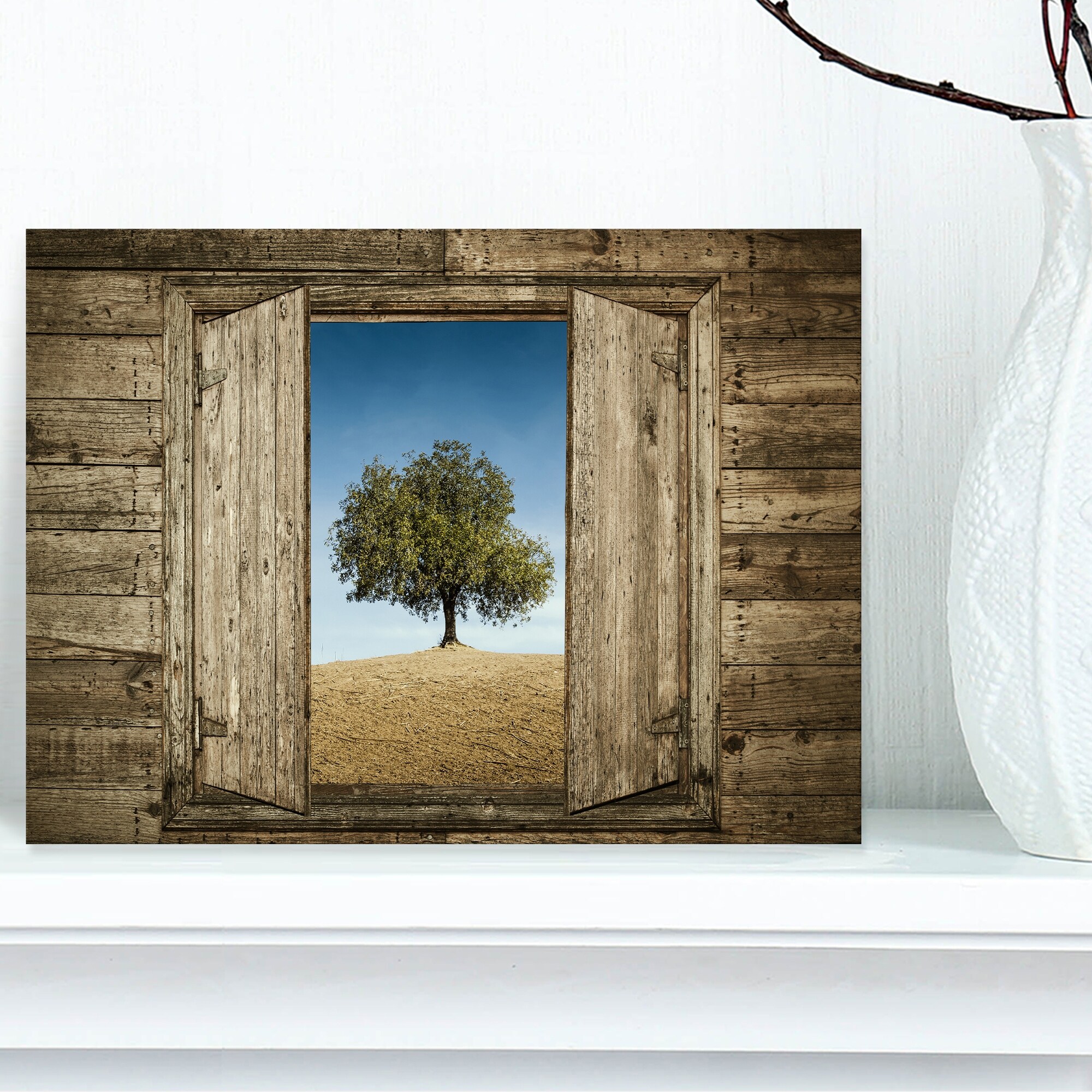 Designart "Window Open to Solitary Tree" Modern Landscape Canvas Art