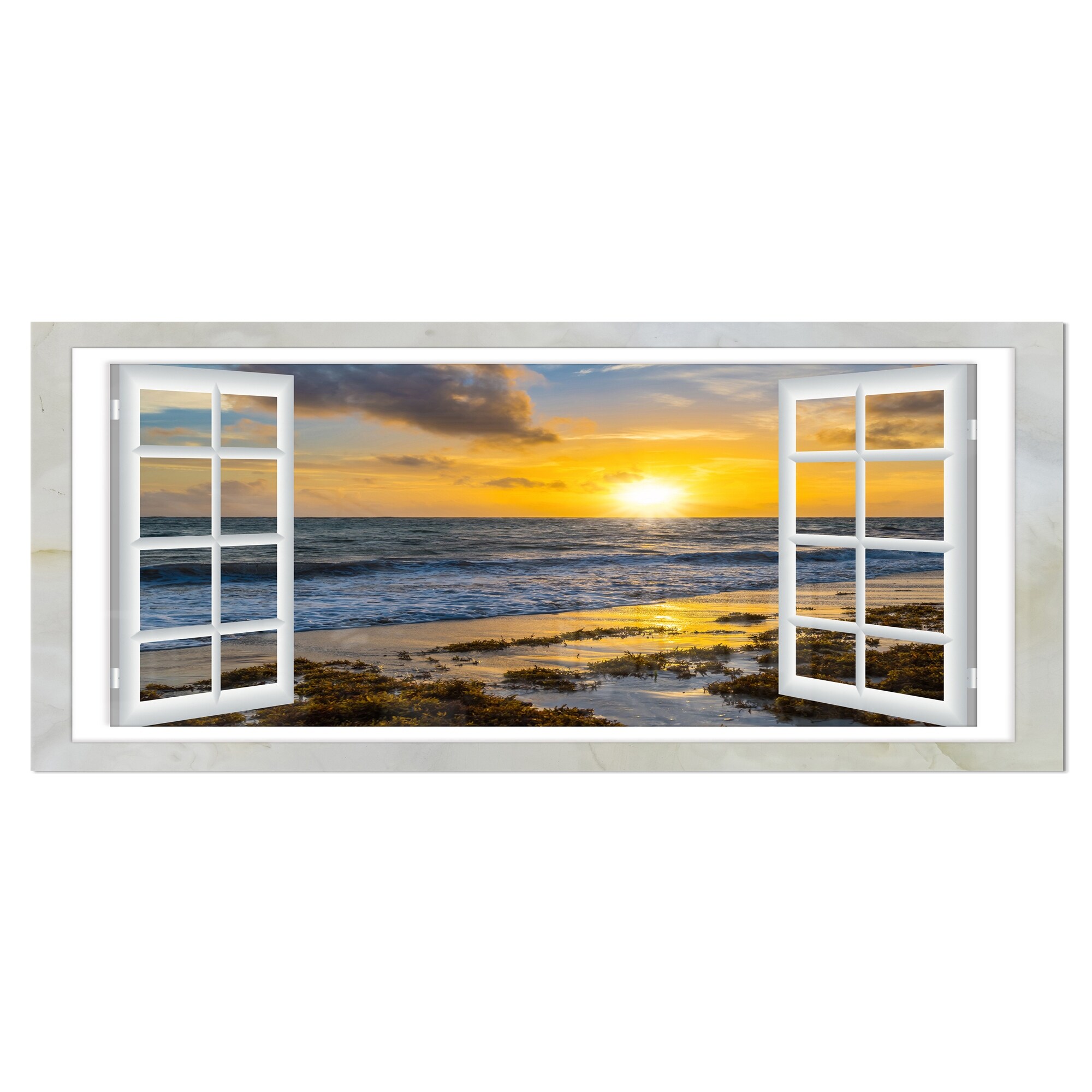 Designart "Open Window to Calm Seashore" Extra Large Seashore Canvas Art
