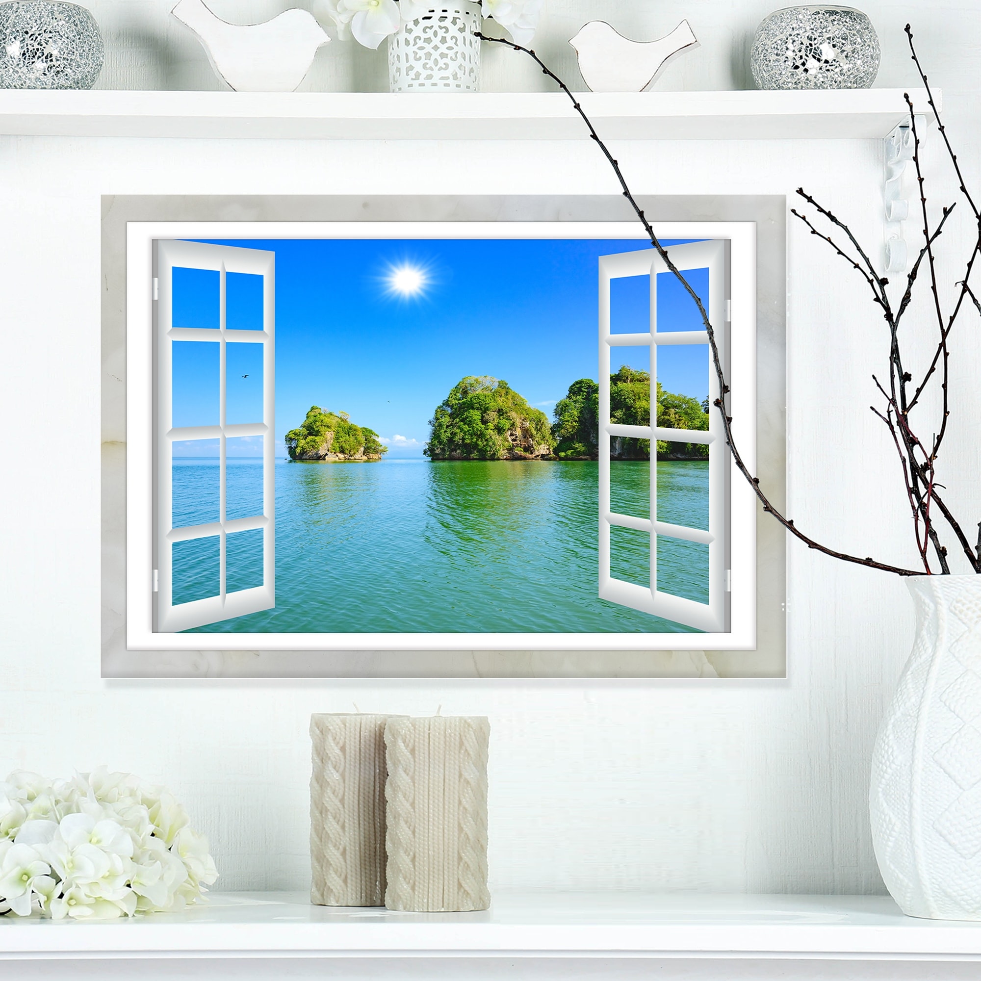 Designart "Open Window to Ocean Islets" Oversized Landscape Wall Art Print