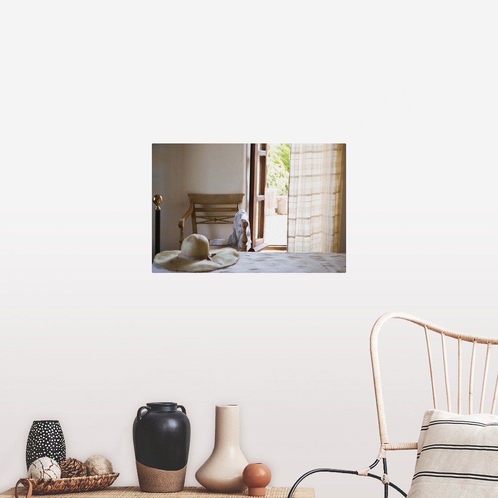 "Hat on bed by open window" Poster Print - Multi
