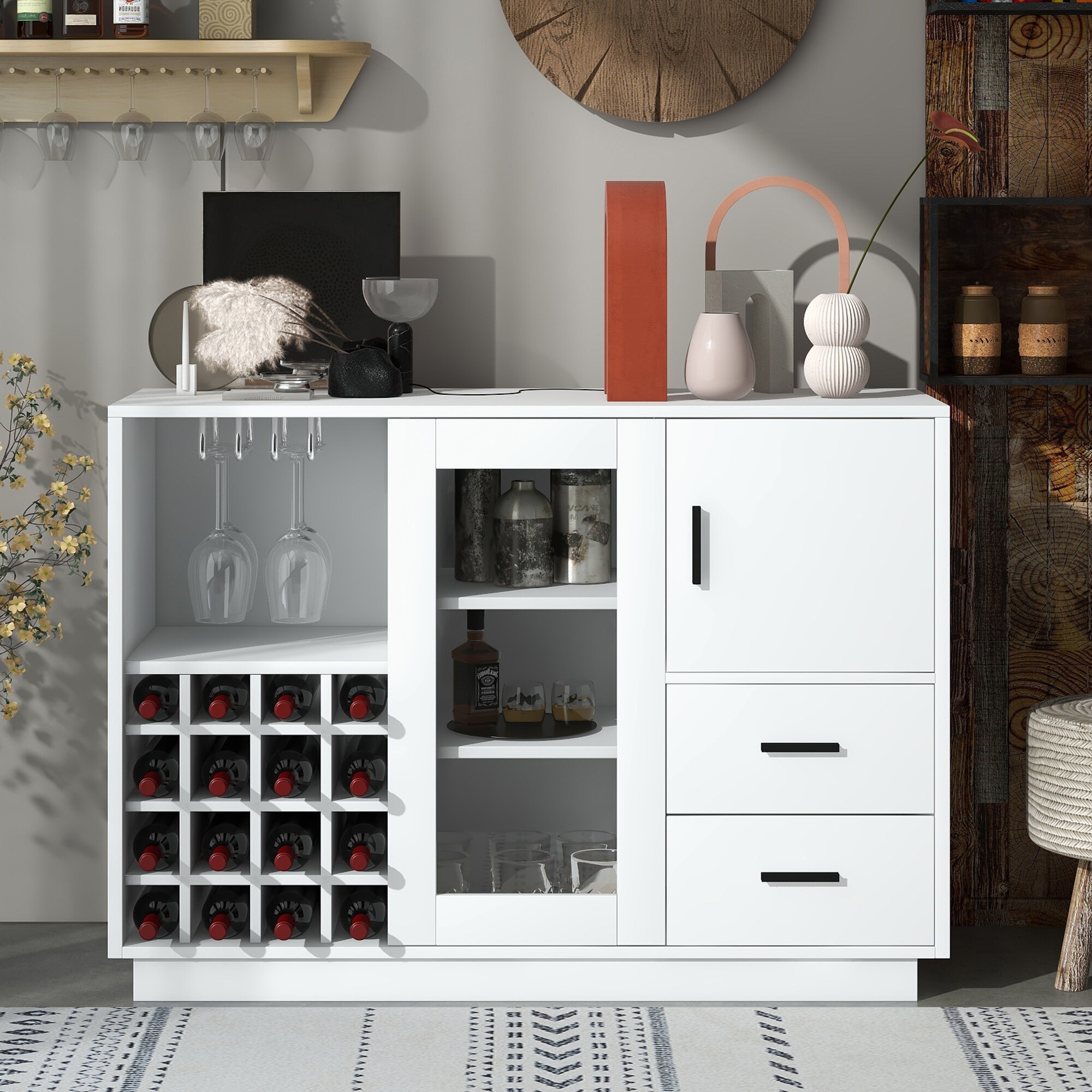 Farmhouse Kitchen Sideboard Storage Cabinet with Wine Racks & Glass Holders, 16 Wine Storage Compartments