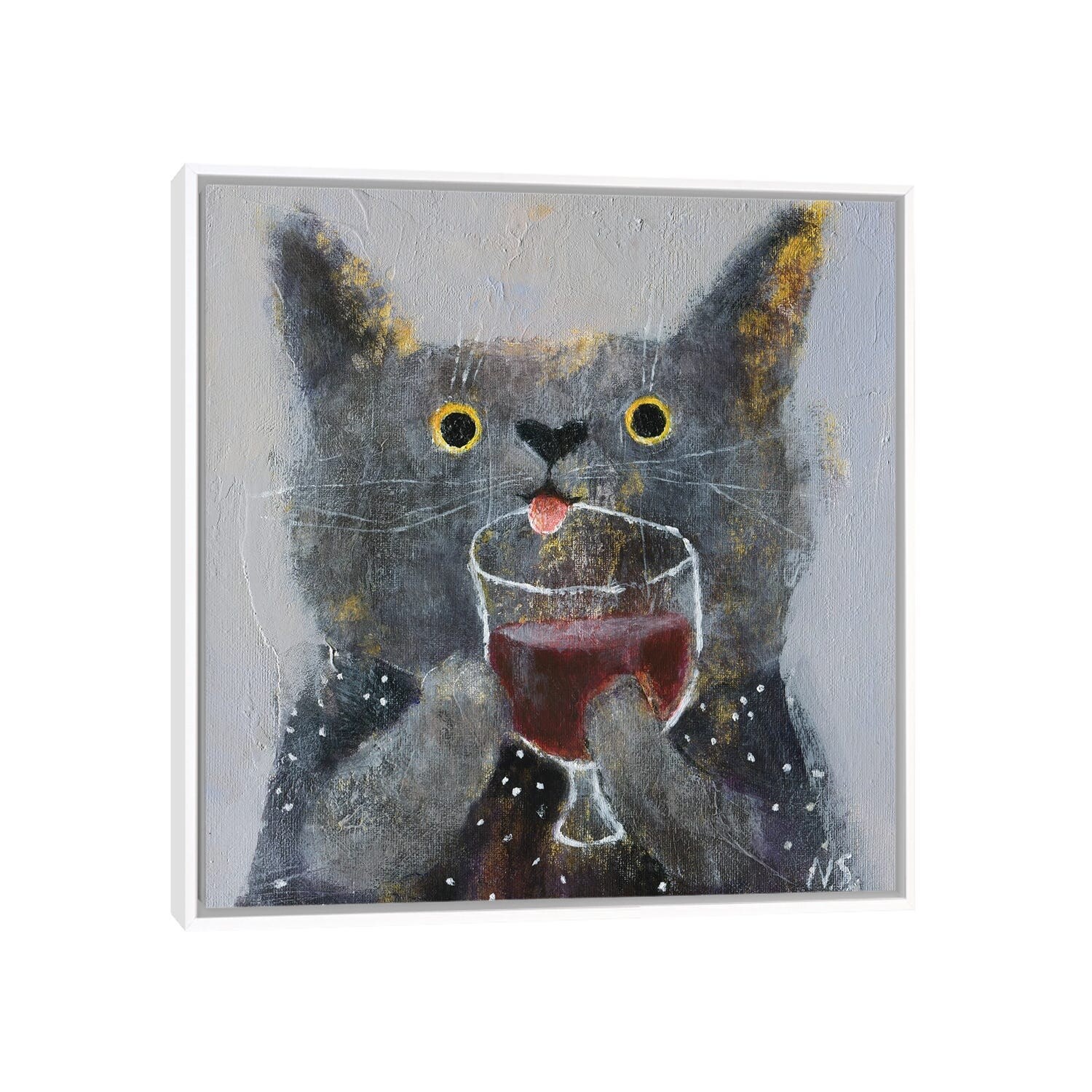 iCanvas "The Cat With Glass of Wine" by Natalia Shaloshvili Framed