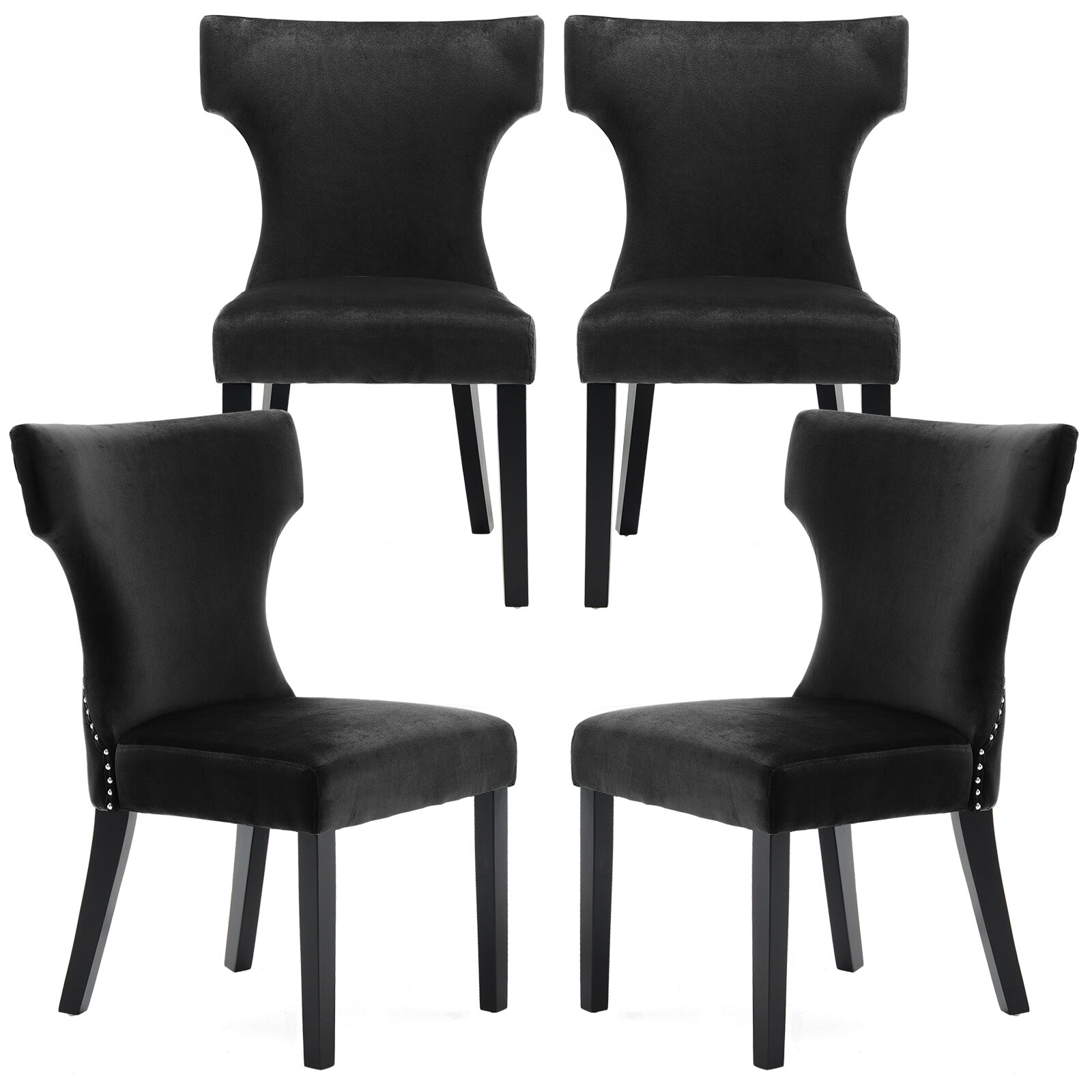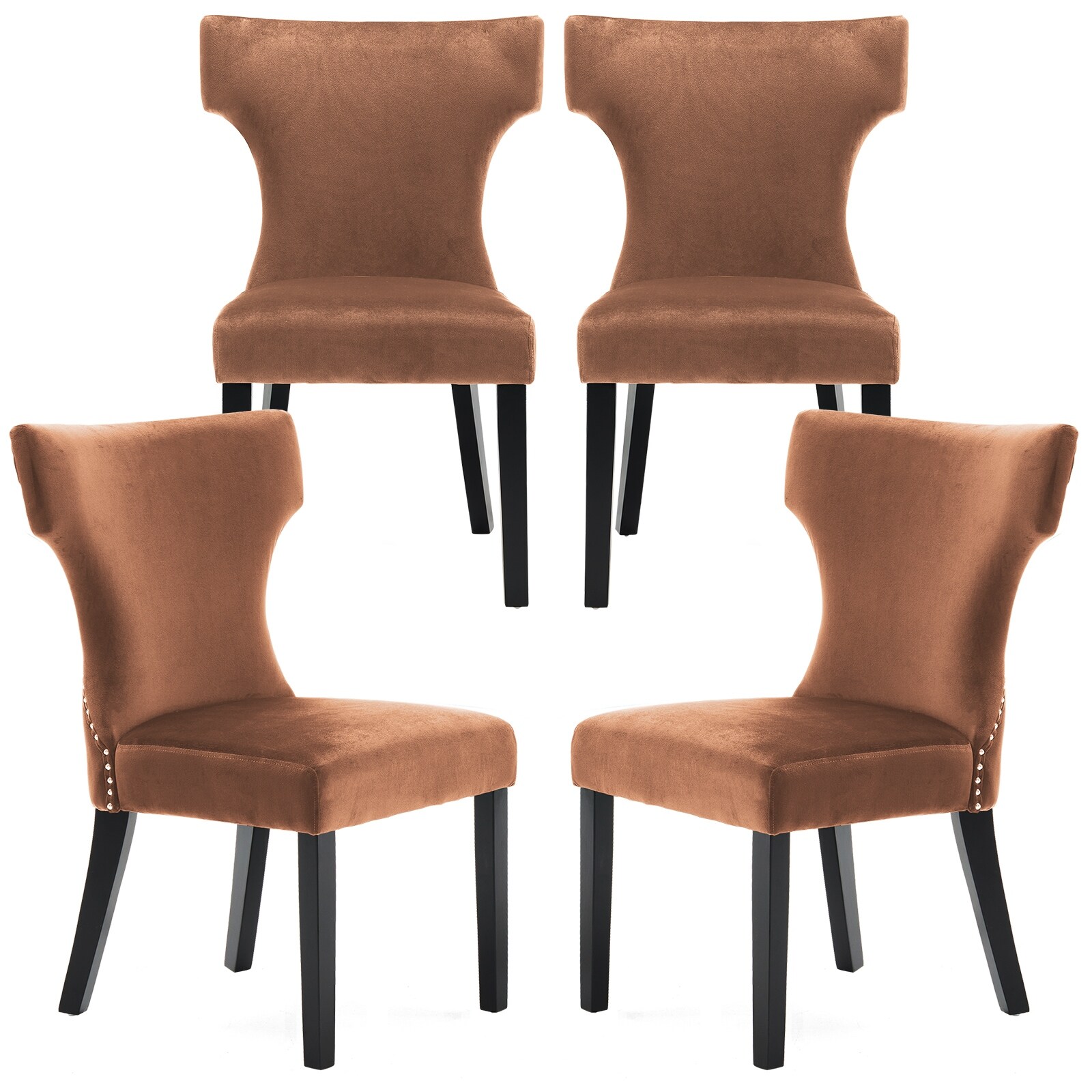 Modern Velvet Upholstered Dining Chairs with Nailheads Solid Wood Legs, Set of 2