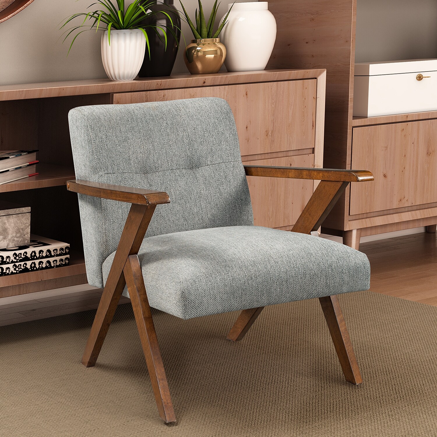 Mid Century Modern Style Accent Chair with Solid Wood Frame