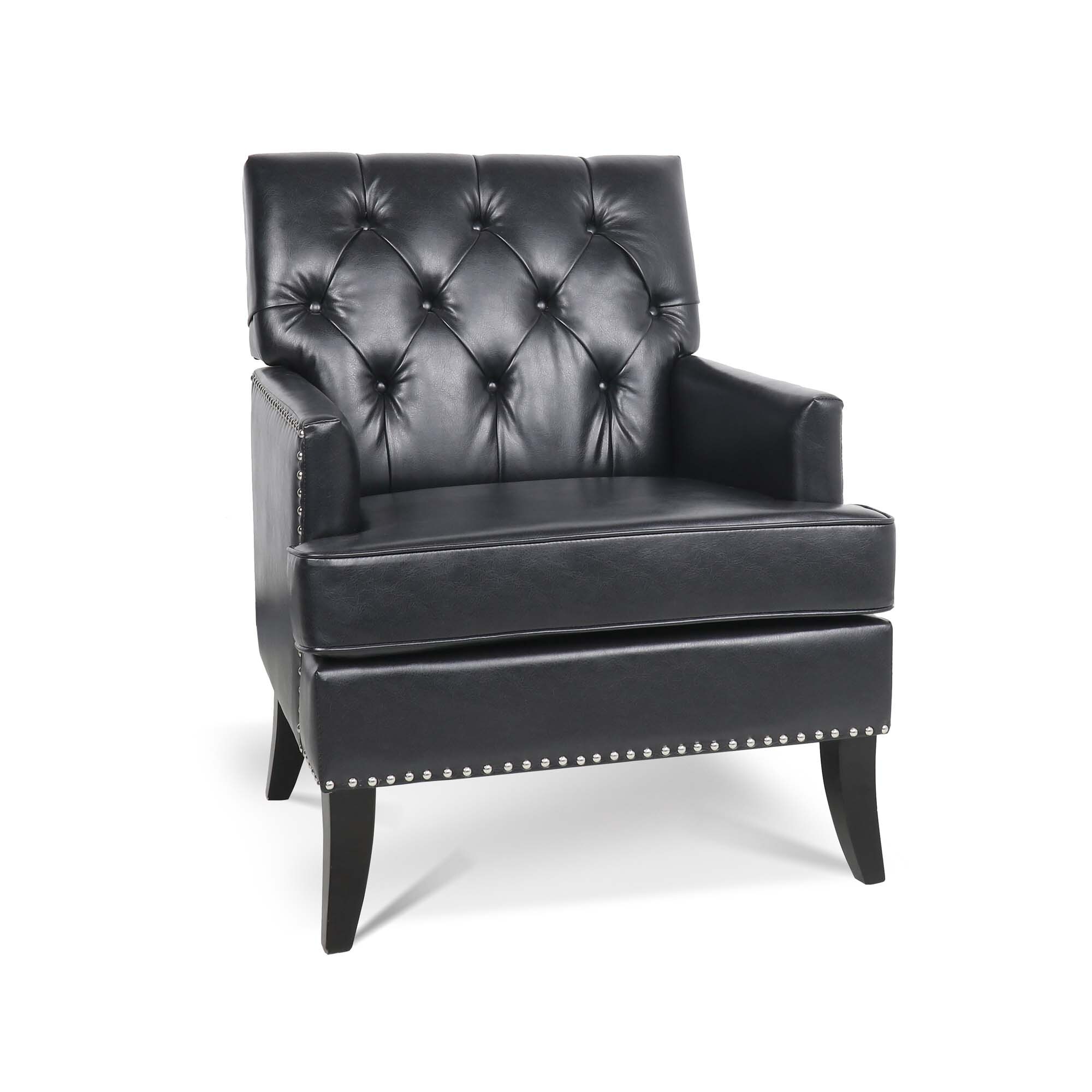 Kina 28 Inch Accent Chair, Button Tufted, Angled Wood Legs - 31 H x25 W x 27.5 L Inches