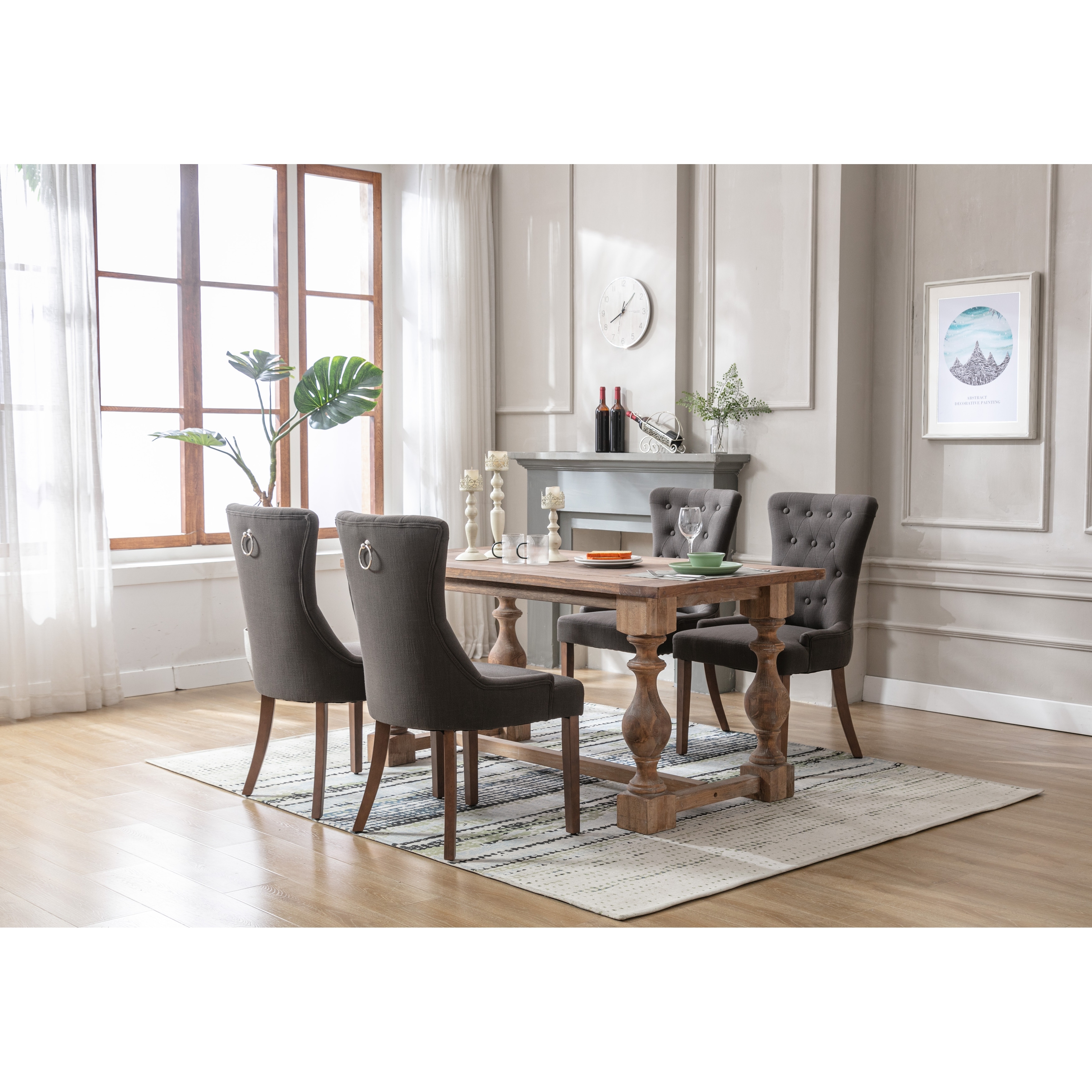 Linen Fabric Upholstered Dining Chair with Solid Wood Legs