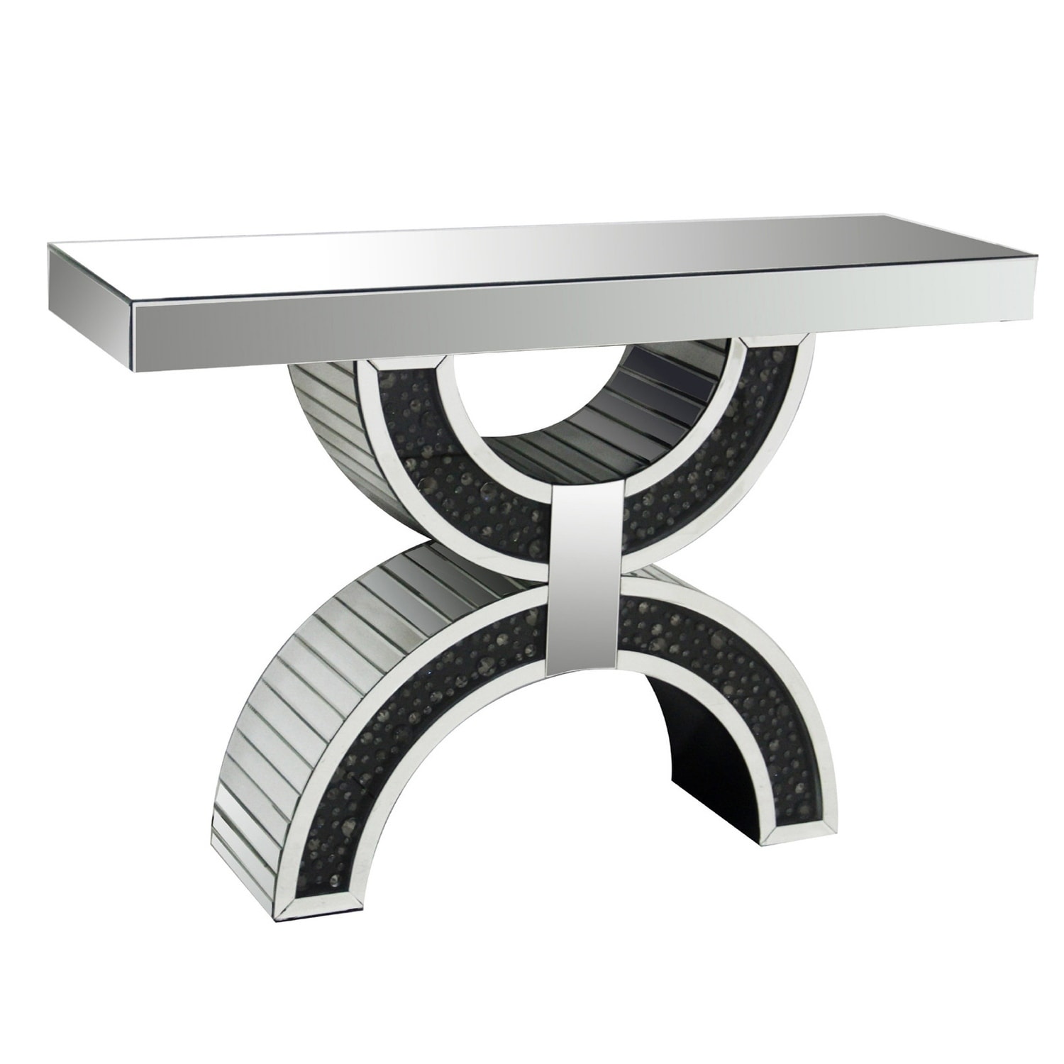 Sculptural Mirrored Wood Console Table with Faux Crystal Accents