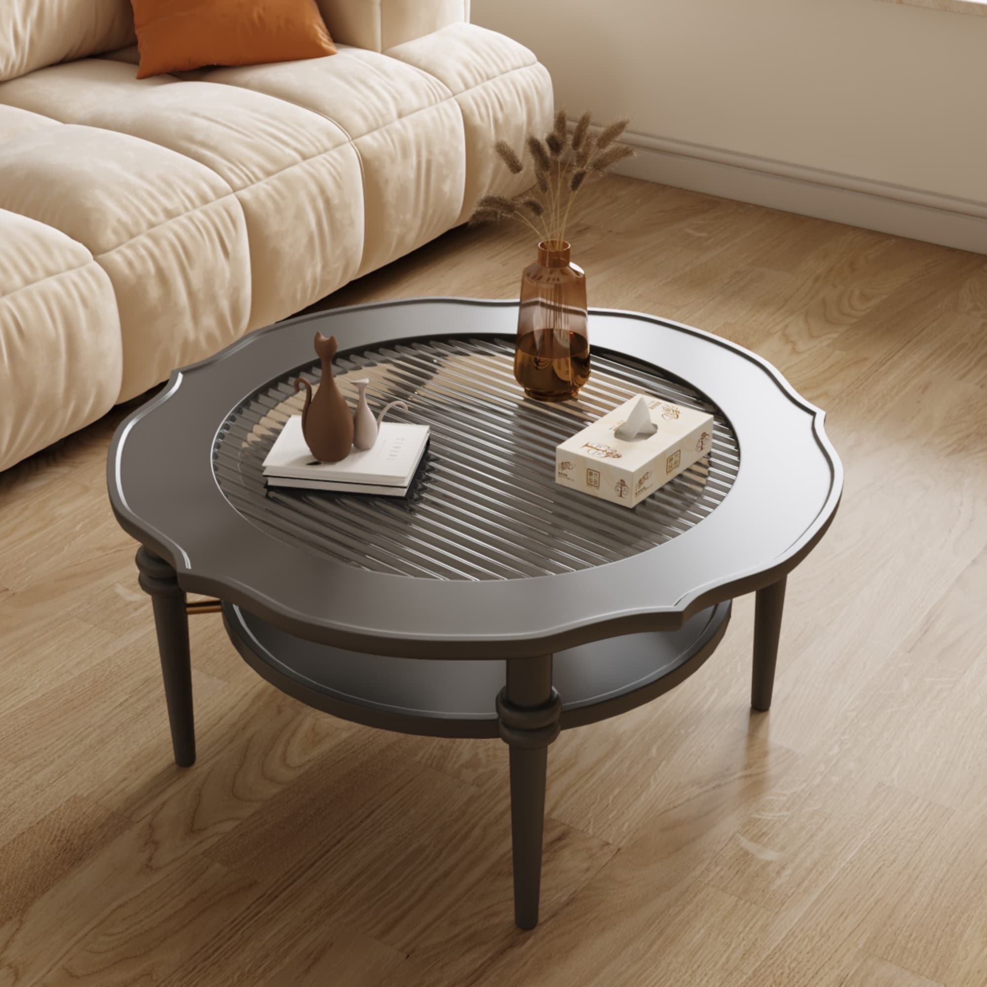 Modern Solid wood/Tempered glass coffee table