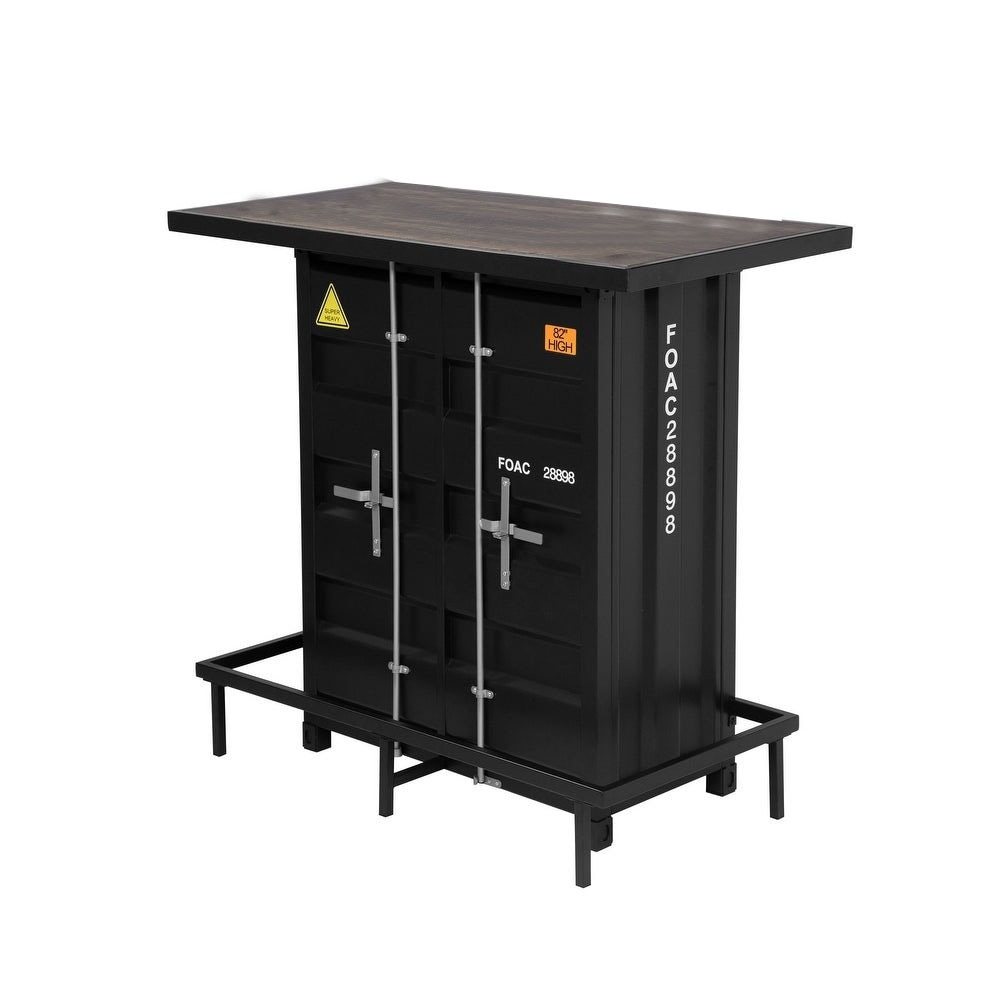 Faux Wood And Metal Bar Height Table in Black And Distressed Dark Oak