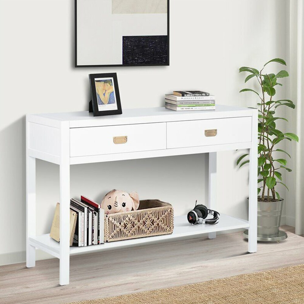 Modern Wood Console Table with 2 Drawers in White - 54 x 84