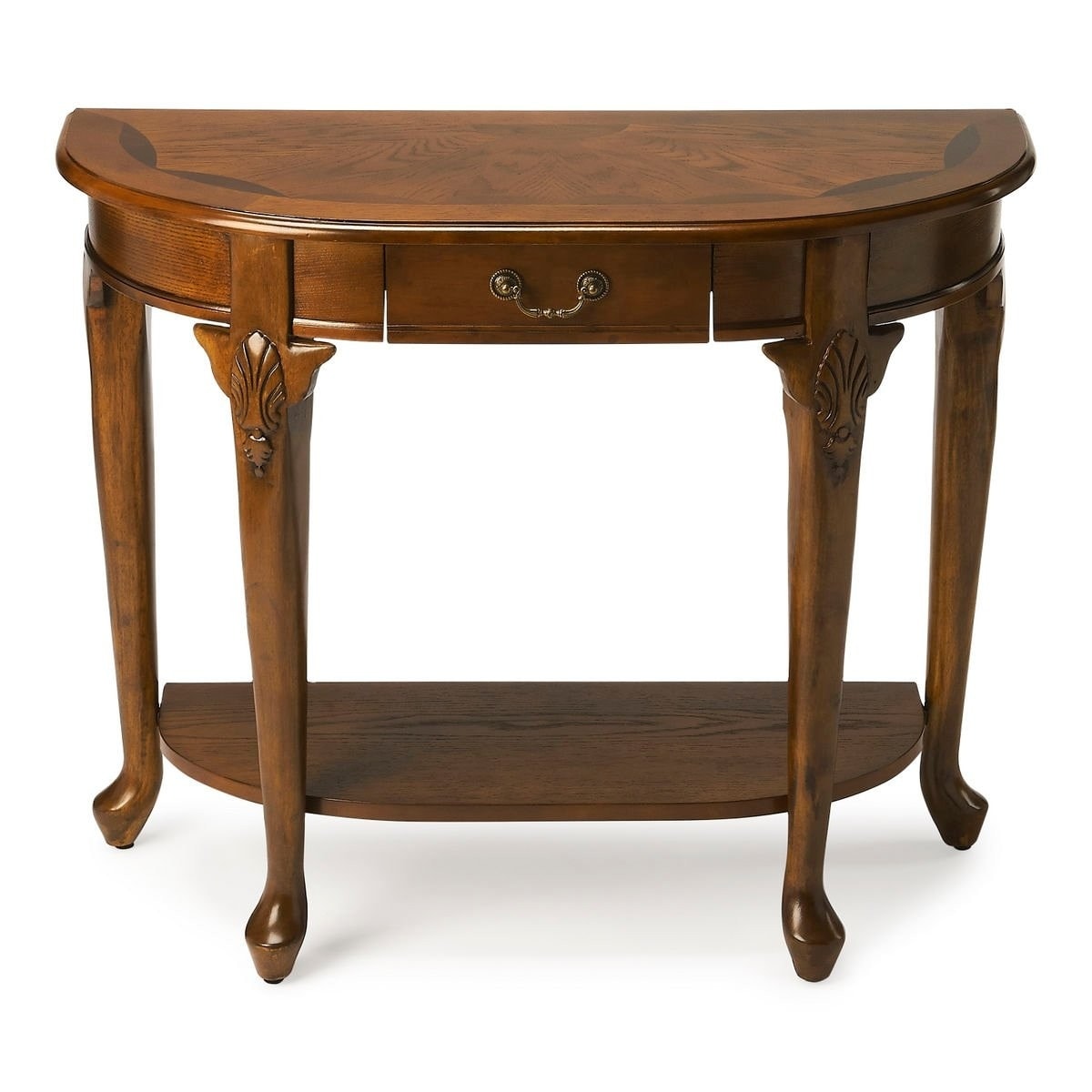 Traditional Demilune Solid Wood Console Table in Vintage Oak Finish - Medium Brown