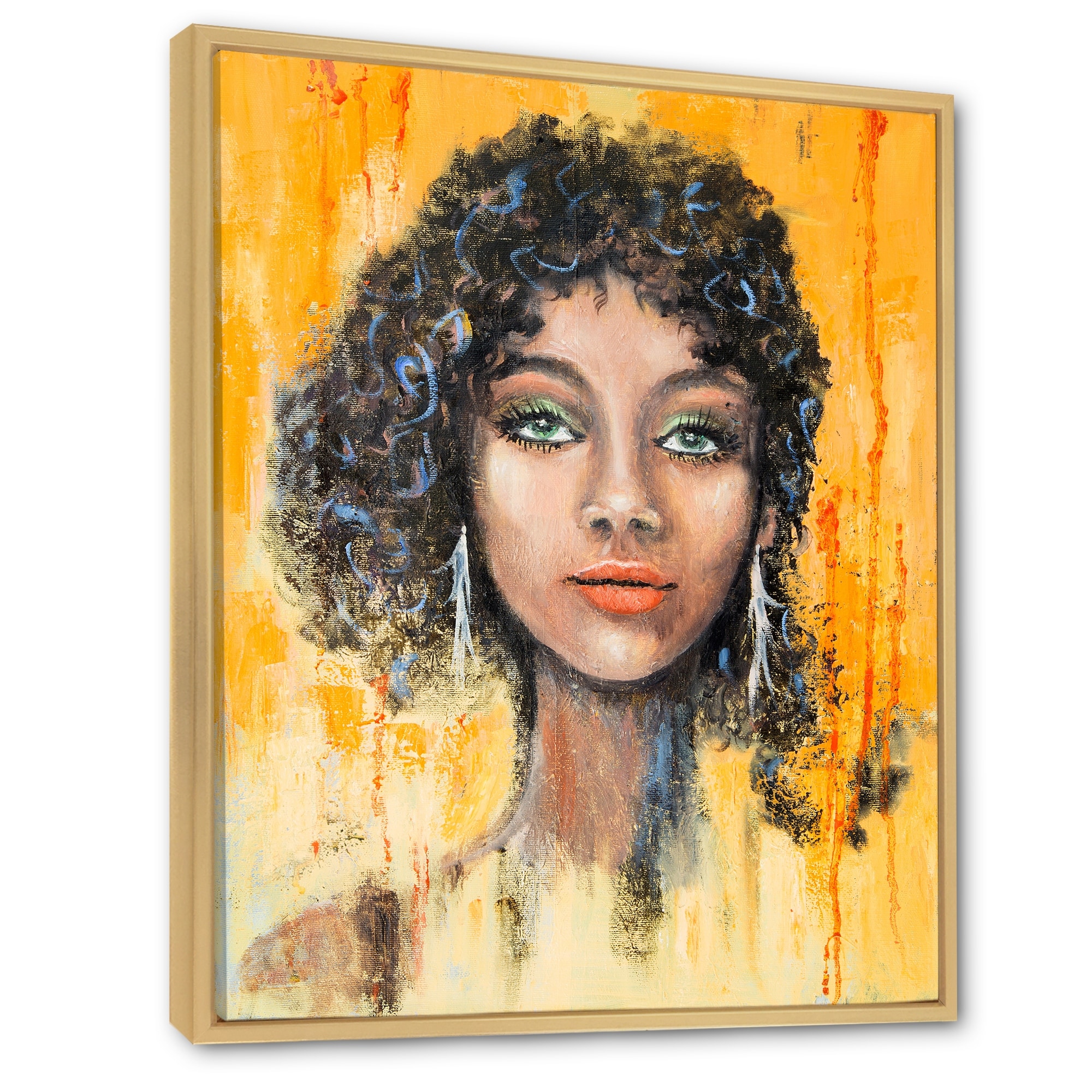 Designart "Woman Face With Green Eyes & Black Hair Impression" Modern Framed Canvas Wall Art Print