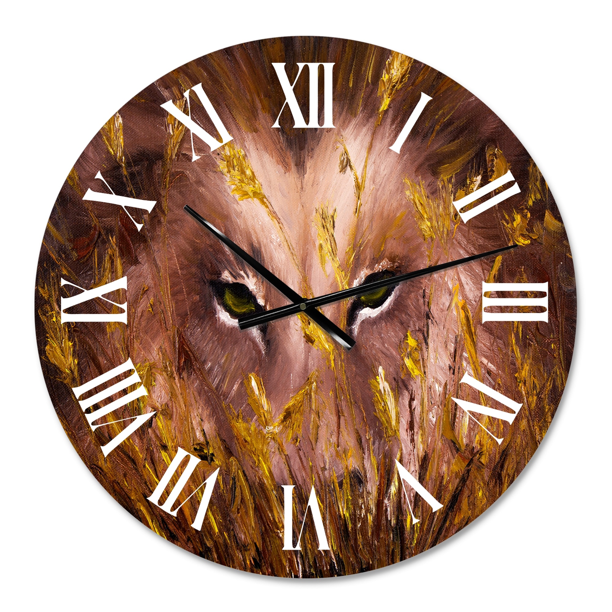 Designart 'Wolf Eyes in the Grass' Farmhouse wall clock
